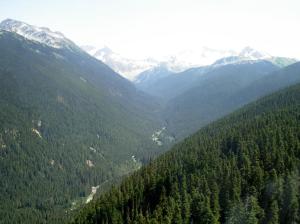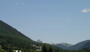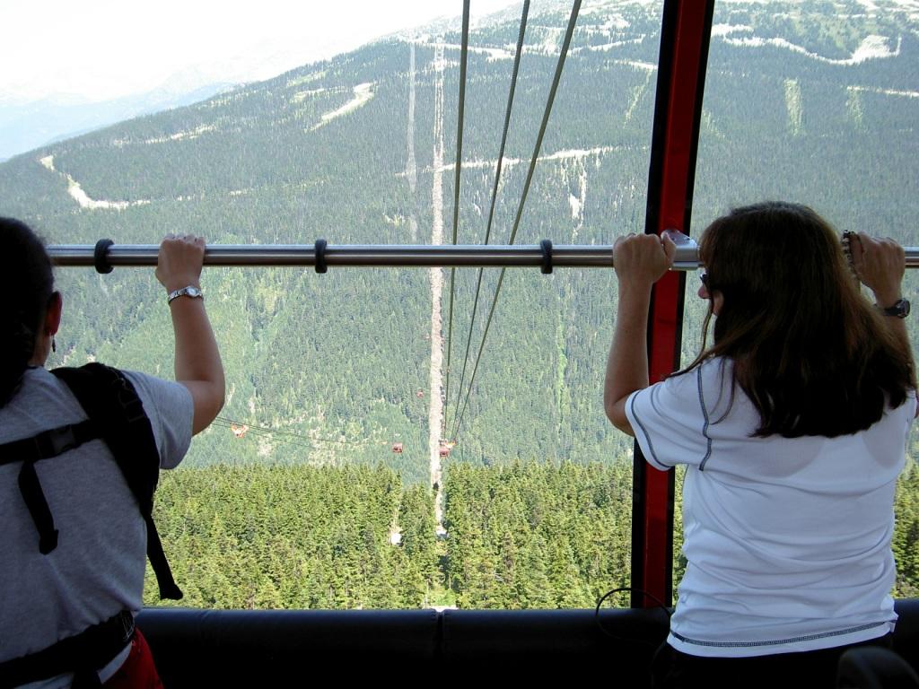 Whistler has the gondola with the longest cable span in the world. Once you pass the last support tower, it is amazing how far down the cable bends before climbing up the other side. Still, even at its lowest point you are still way the heck up there. If you click on the final picture to enlarge it, you can get some idea of how high the gondola is.