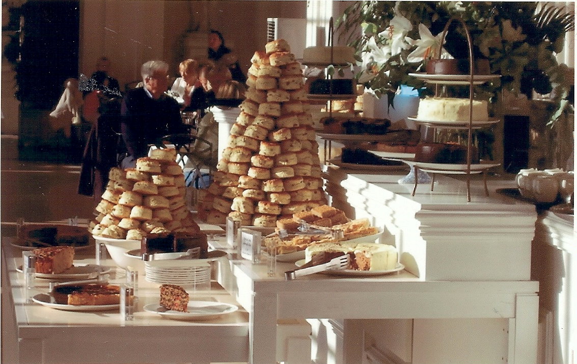I took this photo about 4 years ago on a sunny Sunday morning in London. This fabulous stack of scones was taken in the Orangerie at Kensington Palace. A really wonderful and comfortable place to sit with friends. I am very proud of this picture, I think the lighting is just perfect. Unfortunately, this was taken before I had a digital camera and the only copy I have is this well worn one that has been tacked above various desks over the years, so it doesn’t scan very well. Looks better in person. Maybe I still have the negative somewhere.