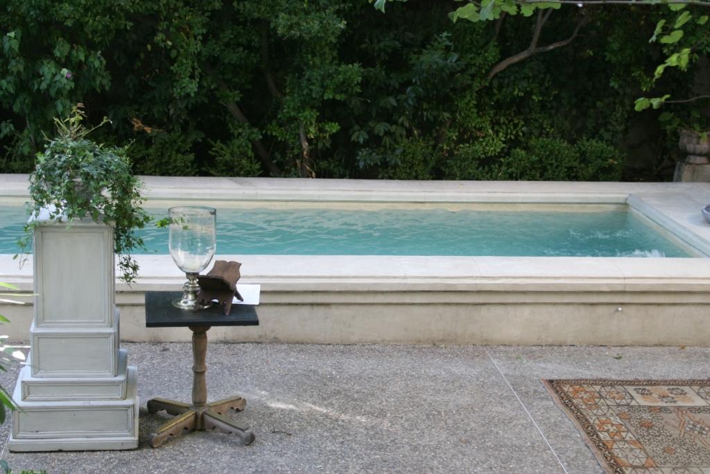 When we finally got to our hotel Arles were were pleasantly surprised at how nice it was. L’Hotel Particulier is a great boutique hotel in a very unassuming neighborhood in the center of town. Behind the big wood doors is a courtyard with a really lovely pool surrounded by beautiful lounge areas and a few terraces that go with a few of the rooms. We were lucky enough to get one with a terrace overlooking everything. The bed wasn’t very good, but that is a matter I will save for Trip Advisor.
