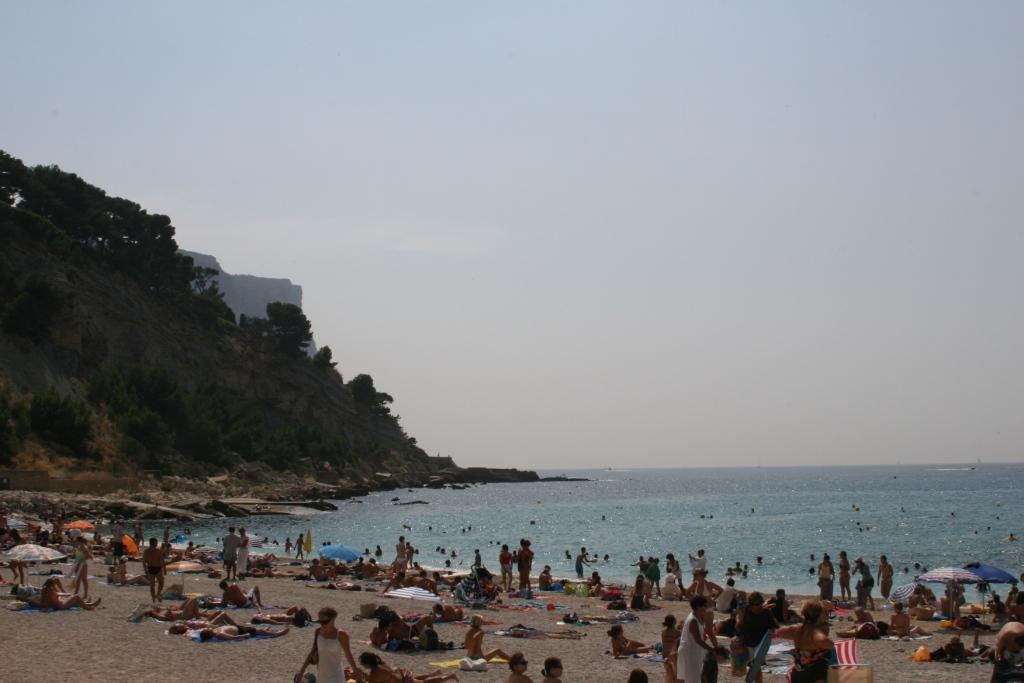 It was definitely the right day to be at the beach. Hot, sunny, and kind of humid. The only problem was that we really didn’t have all the basics for a good day at the beach. We had swimsuits, sunscreen and sunglasses, but no towels. I lived in Hawaii for two years, I love the beach and am not afraid of sand. But, I don’t like trying to be tourist and beachgoer on the same day. Unless you have a giant bag allowing for change of clothes and a clean, dry, place to change, shower, get rid of the sand, etc. it just seems too darn messy. Plus we had to get on a crowded shuttle bus to get to our car, and we had plans to go to Aix-en-Provence later in the day. It was just all too much. And the humidity had me cranky. I was hoping I had left that behind in DC. In the end John got in the water and I merely waded in up to my short line. Refreshing, but not as satisfying as a day at the beach. Next time I won’t try and cram touring in on a beach day. And we would have thought of towels before we got to the beach and they were charing 22 Euros for ugly touristy beach towels.