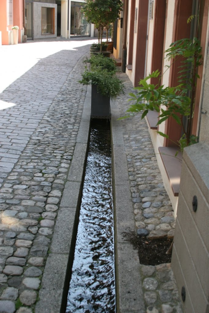 Throughout the center of Freiburg, in addition to lots and lots of really great cobbles and stone work pavement, they have this little gutter/canals that have clean water flowing through them. I am not sure why they have them, but the effect is quite nice. The reflection and the sound of the water really make for a pleasant atmosphere.