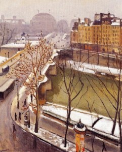 Since it snowed this weekend in the DC area I thought I would pay homage to the white stuff. Unfortunately, we were out of town and missed the snow, and now that we are back there isn’t much in the way of remnants, so I will gaze at this scene of snowy Paris instead. Oddly enough, this particular painting of Paris lives in Melbourne, Australia which is where we saw it back in 2007.
