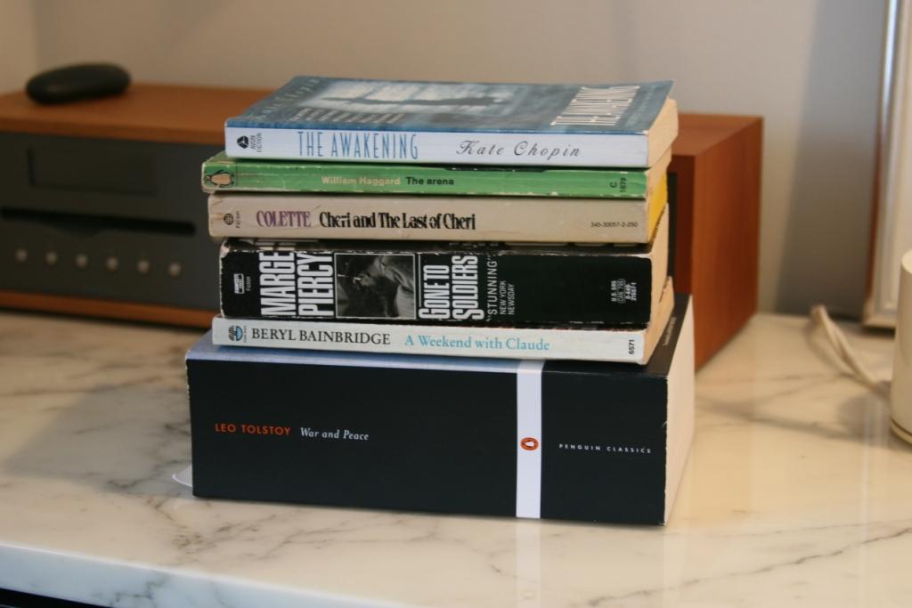 I know my audience, you need to see covers. With the exception of Tolstoy and the green Penguin and possibly the Chopin, the rest will stay in Asia as I finsh them.