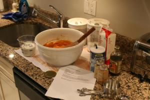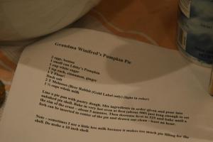 I am not a huge fan of pumpkin pie, but John really loves it. So we got out his grandmother’s recipe and popped it in the oven. It won’t be the only dessert over the next few days…