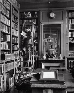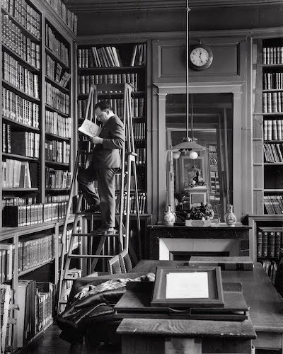 André Kertész. It can be found on p. 56 of his book On Reading (reissued 2008) and is titled “André Jammes, Paris. November 4, 1963”.