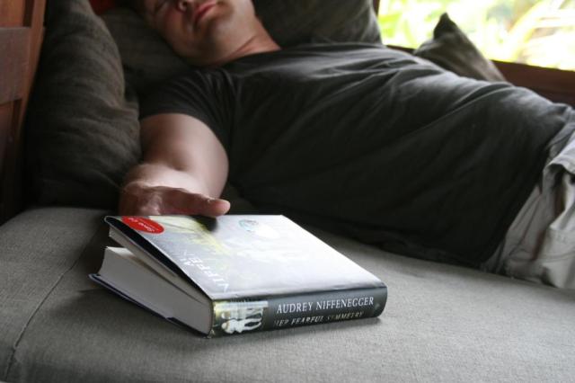 I just came across this picture John took of me havng fallen asleep while reading this book.