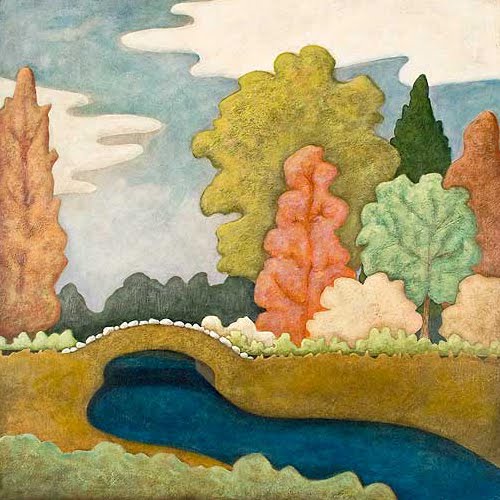 A few weeks ago we were at the world-famous Mayo Clinic in Rochester, Minnesota. (Don’t worry, no one is sick.) Mayo has a pretty extensive art collection scattered throughout the clinic campus. These particular works by Carrie Crane really stood out for me. I even crossed a room to get a closer look. I like the boldness of them and the pastoral landscape subjects. To me, they have a bit of a Grant Wood quality.