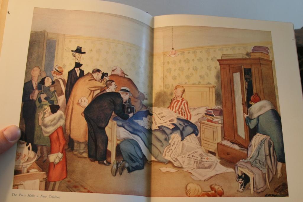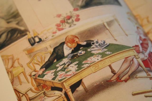 But I did look at it and I sure am glad that I did. Published in 1934 by Hutchinson and Co. the story follows George as he wakes up one morning to find himself unexpectedly a millionaire and a peer. Each chapter starts with a double page color plate and chronicles a step in his rise and fall. The Rake Gives a Cocktail Party, The Rake Invests in the Movies, The Rake’s Marriage, The Rake’s Divorce…you get the idea.