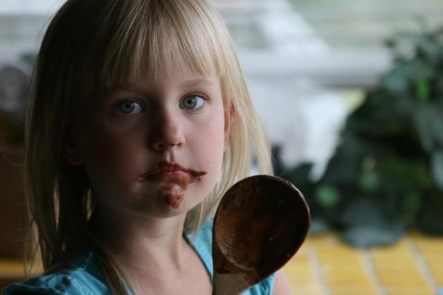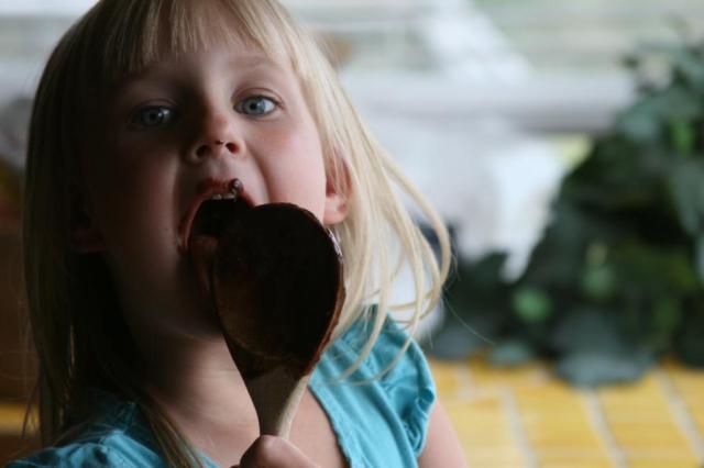 I tried to be the adult by letting her lick the spoon…it wasn't easy.