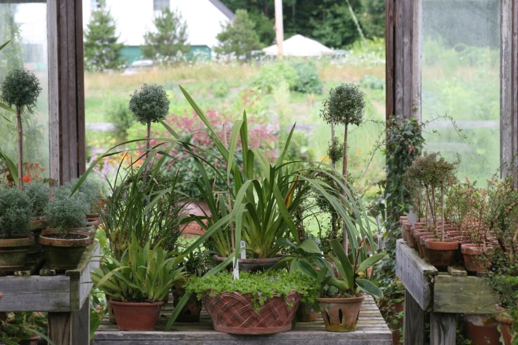 I earn a lot of points with John just by allowing pitstops, sometimes even detours, so he can visit some of the wonderful nurseries he has discovered in his online perigrinations. So when the road to our cottage in Maine took us near Snug Harbor Farm in Kennebunk. Unfortunately for John (but fortunately for our checkbook) we were on the start of our journey and the car was plumb full already. No space for plants. So, like a visitor to a national park, he is contented to take photos.