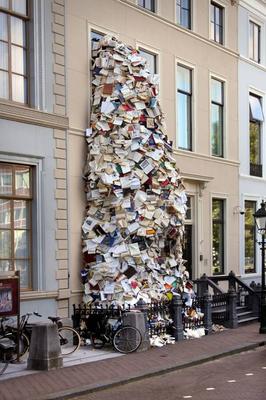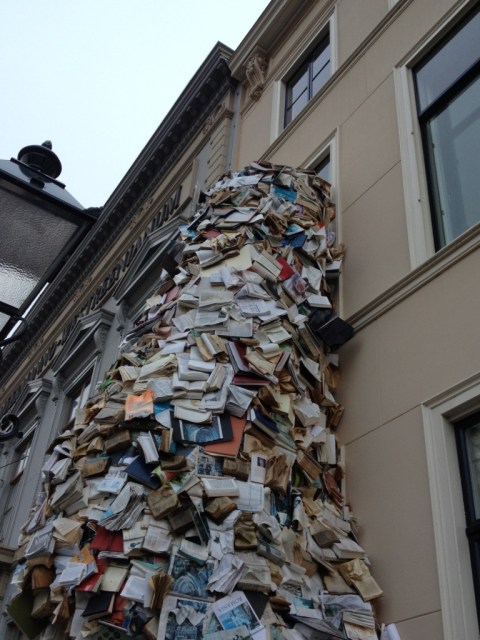 I have been having a great time running around the Netherlands. I am staying with friends in The Hague where there was this very cool temporary scuplture. Thank goodness the books weren’t in English and I don’t read Dutch or I would have been tempted to climb the sculpture to find something good to read.