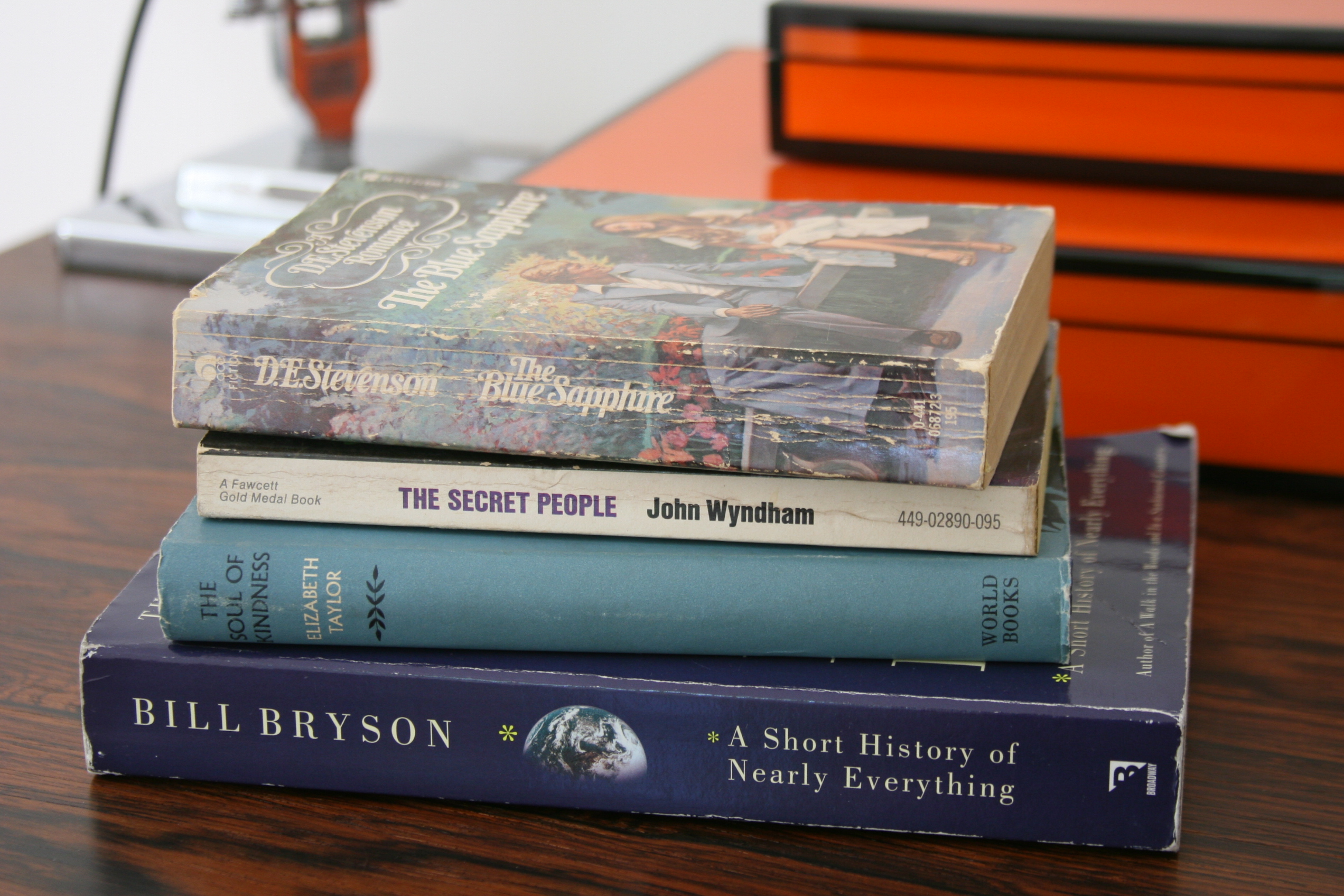 With the exception of the Taylor, these books aren’t in the greatest shape and kind of sums up the state and condition of Wonder Books. I bought the Bryson because I have listened to much of them book on audio and there is so much I want to be able to read for myself. The Secret People is a John Wyndham I haven’t read. Yay for that. And The Blue Sapphire actually replaces a slightly better copy of that edition that I also bought at Wonder Books but left on a cruise ship library after reading it back in 2012.