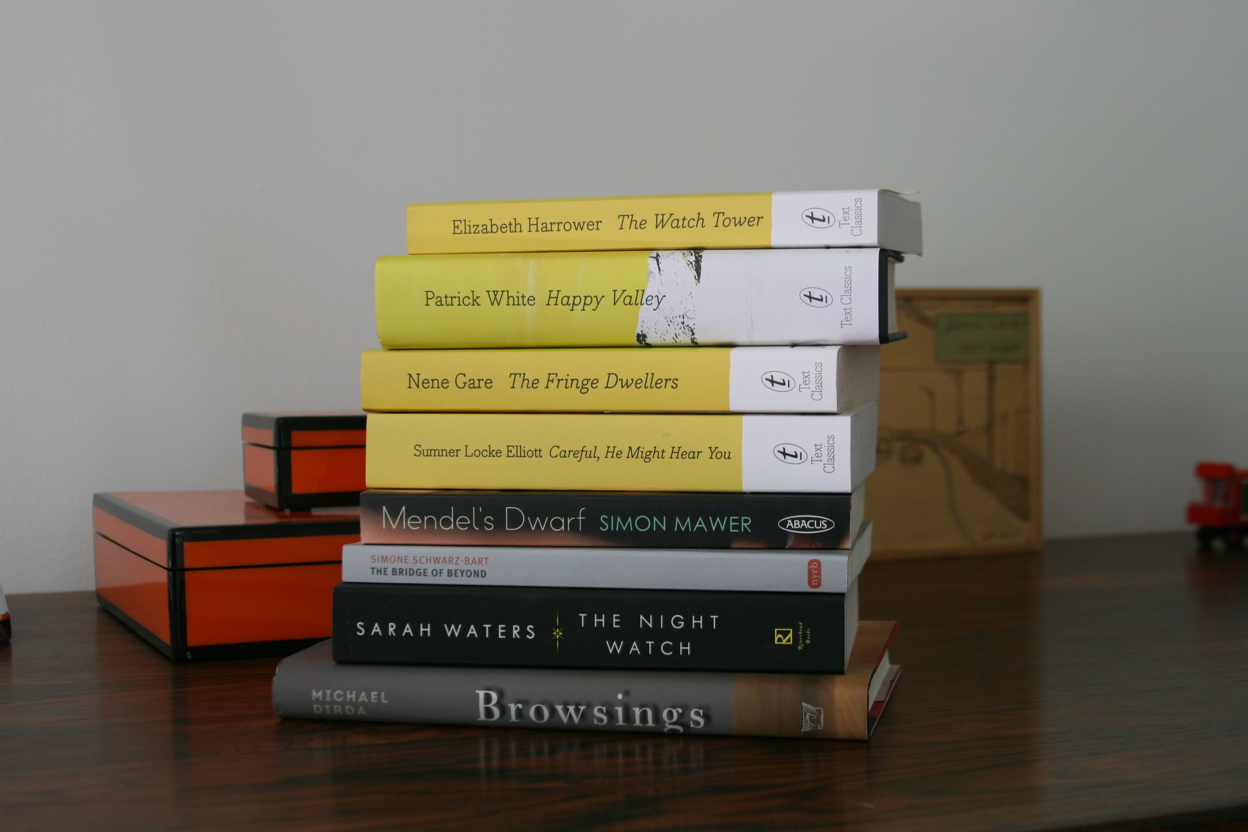 I am pretty sure that all but the bottom book came off the sale shelves. I got the Waters because I kind of enjoyed The Paying Guests, at least enough to try another one. I got the Simon Mawer because I LOVED The Glass Room and merely liked the far inferior Trapeze. The NYRB got purchased just because it is NYRB and it was on the sale rack. Those are always worth a go, even when they aren’t.