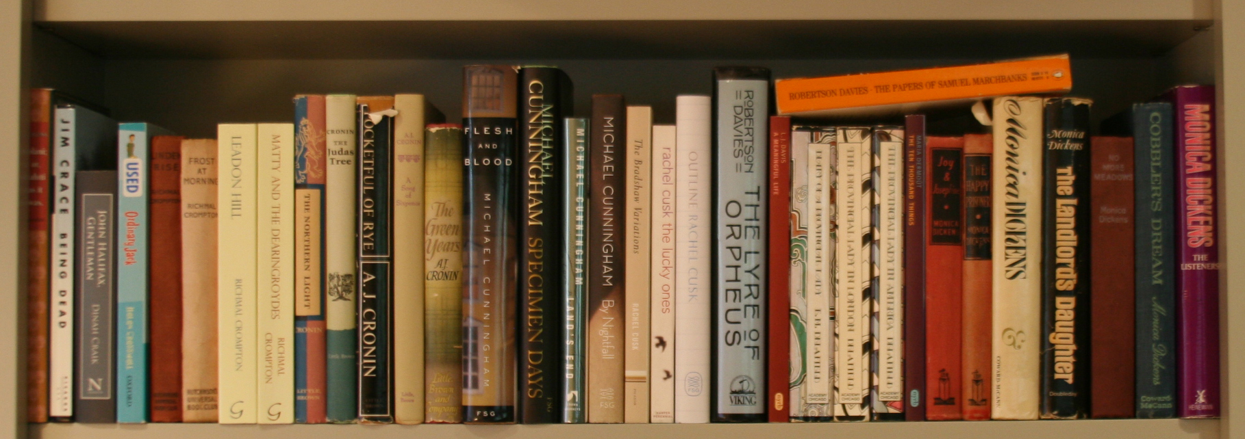 I used to read AJ Cronin when I was a teenager in the 80’s. They were old fashioned even then, but I found them highly readable. The Citadel was one of his better known novels, as was Hatter’s Castle. However I loved a small novel he wrote called Lady with Carnations. I have more recently read The Judas Tree, which I found a bit dull. I’m pleased to see these AJ Cronin’s on your shelf. Robertson Davies and Michael Cunningham are also favourites for me.