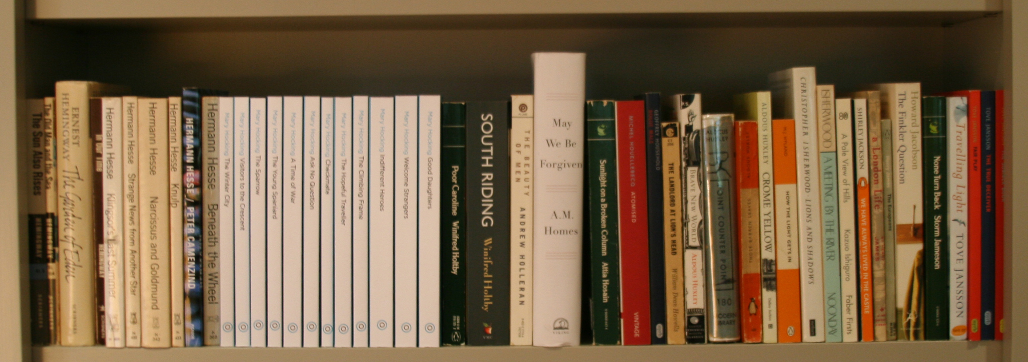 This is a great shelf! I have recently read my first Hemingway – The Old Man and the Sea – and loved it! I have Farewell to Arms on my tbr. I can highly recommend M J Hyland although I haven’t read the one you have on your shelves yet – its on my tbr. I also culled The Finkler Question without finishing it. I’ve not yet tried Hocking or Hesse but they are on my wishlist. Hesse seems to be a bit if a marmite author from what I can tell.