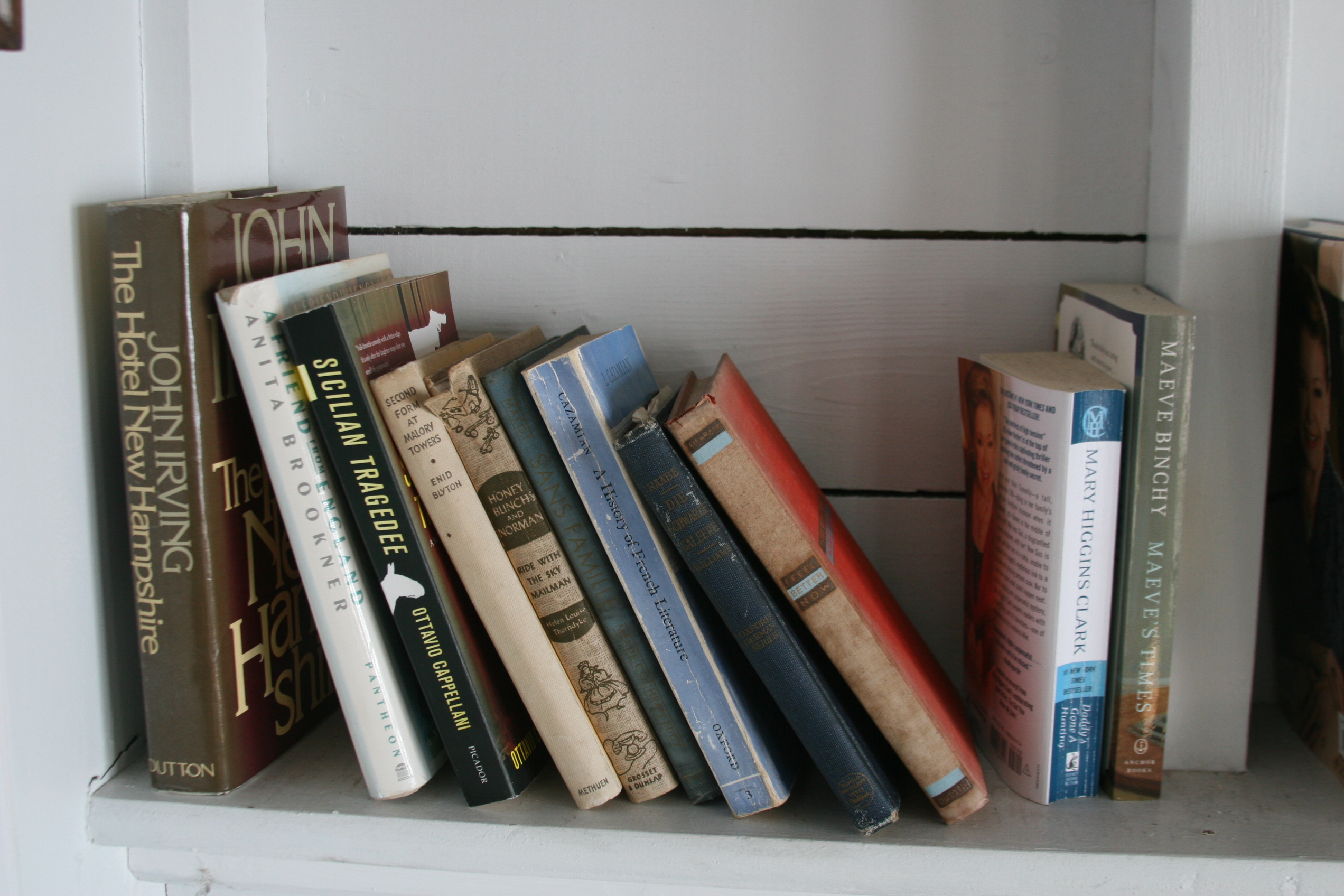 One of the fun things about renting a vacation house/cottage/cabin from VRBO or similar, is the possibility that the owner and previous guests have left behind books. In the past, this has led to some interesting situations. In one case I reorganized the shelves into fiction and non-fiction and then alphabetized the fiction by author. In another, at a house in Tuscany, I spotted a lesser-known Willa Cather novel that I didn’t remember reading before. When I opened the front cover I was confronted with my own name and the date I finished reading it when we had stayed at the house two years previously. Always traveling with plenty to read, it is rare that I actually find something that I want to read. Although it was a cheap pensione in Florence where I found my first Brookner. And at a hotel in Phuket I picked up and devoured Her Fearful Symmetry. There are also the situations where a I want to steal books from the room as I wanted to at the George Hotel in Rye. You can read about that incident here.