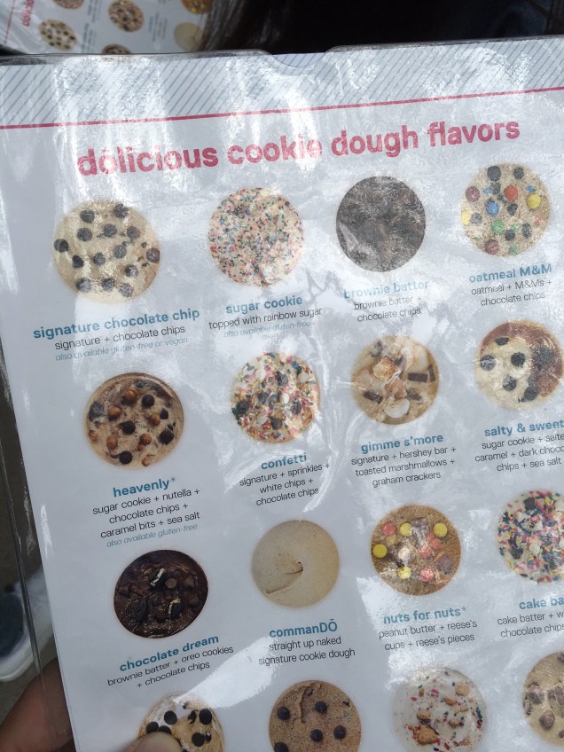 Right before we went to New York in February a friend of mine on Facebook had posted about a place that sold cookie dough like it was ice cream. Being a fiend for cookie dough I had to see what it was all about. I walked by twice only to see a line a block long so I skipped it. On Saturday the line was much shorter so I gave it a go. Here is my review so you don’t have to wait in line: Not horrible, but homemade is a million times better. Even if there was no line and they were giving it away, I wouldn’t eat it again.