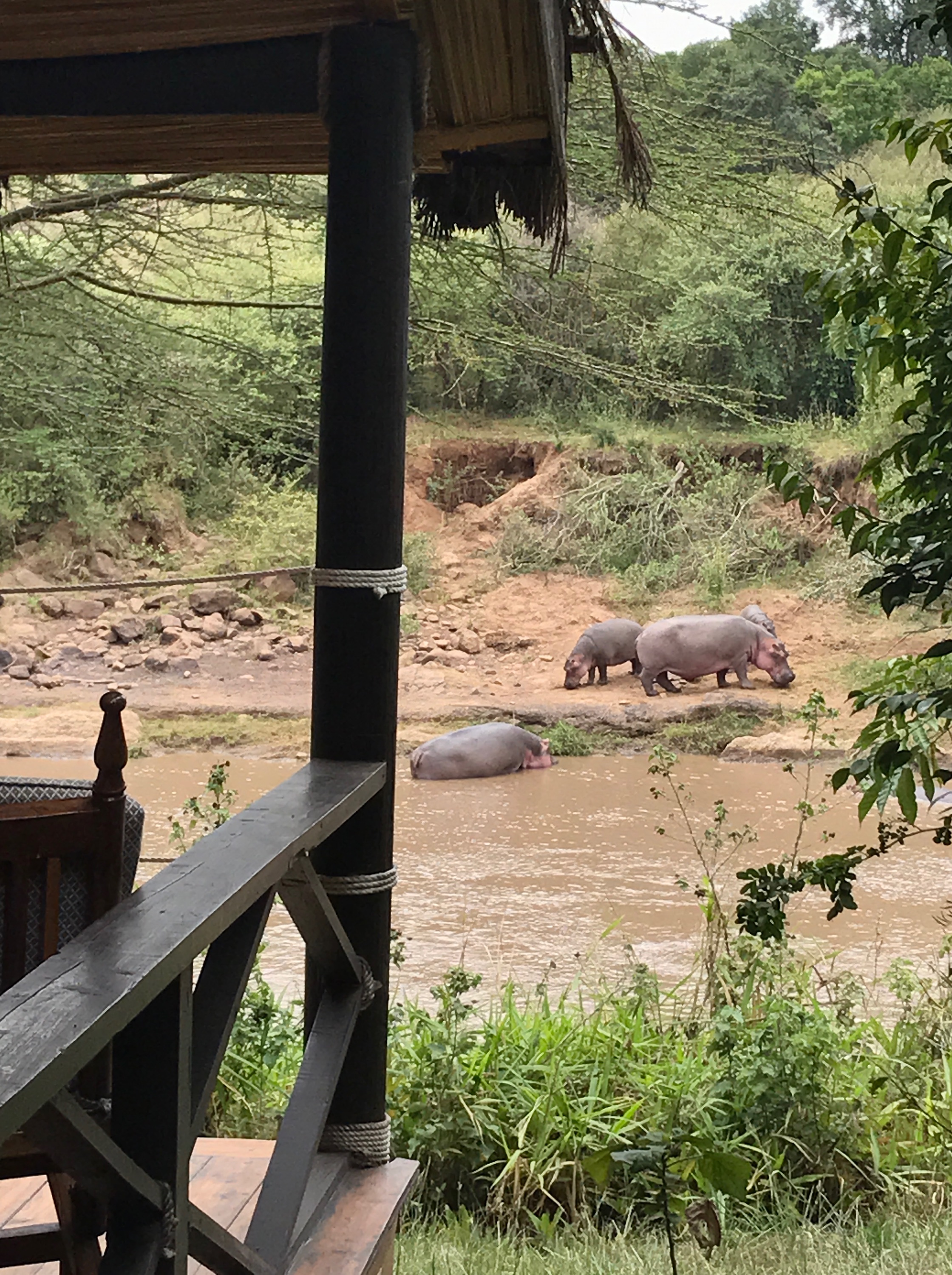 This was the family of hippos who hung out just across from our tent all day. They go out at night to graze. During the day they hang out in and near water.