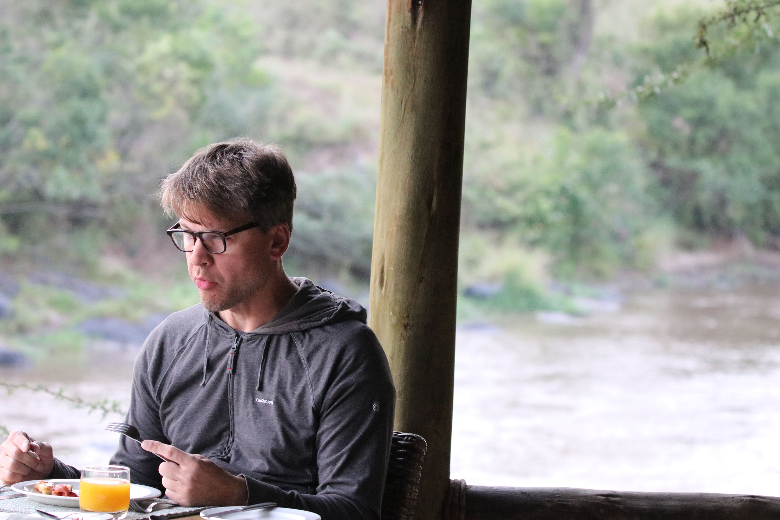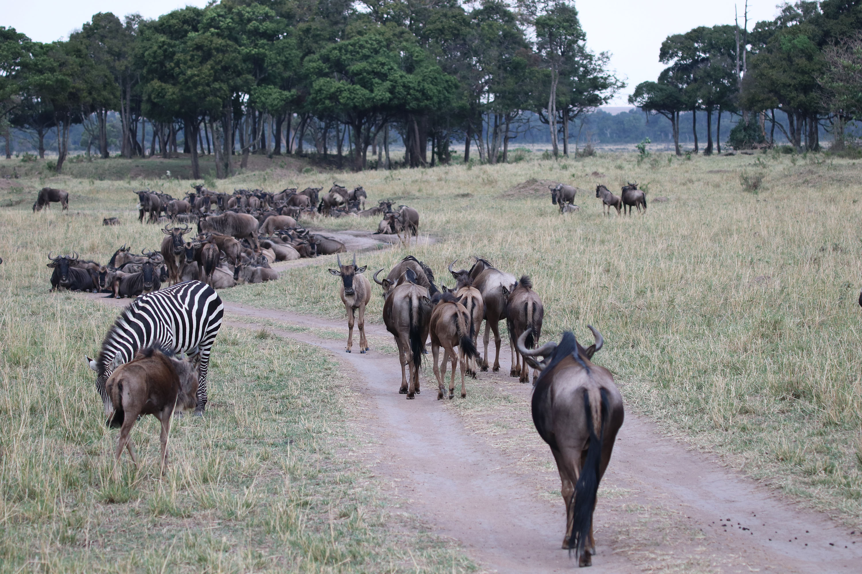 When we went on safari in 2008 we spent the whole time in Kenya. This time we knew we wanted to go to Tanzania, but we also really wanted to revisit the Masai Mara. Even though the Serengeti is contiguous with the Masai Mara, one can’t just drive over to the other side–at least not legally. To get there we had to take one plane to a Tanzanian airstrip close to the border crossing at Tarime, get into a van, go through immigration on the Tanzanian side, get back in the van, go through immigration on the Kenyan side, get back in the van, and take another plane to the Kichewa Tembo airstrip in the Masai Mara. Happily, Abercrombie and Kent took care of all the details so all we had to do was follow very helpful people from one place to the next. And we were to our lodge on the Mara River by lunch time.