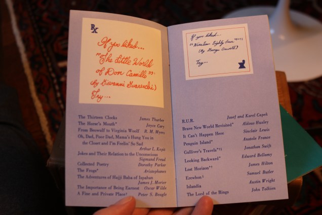 This boxed set isn’t particularly valuable, but it is in pristine shape. I already own an unboxed set of Faber editions that live on my shelves, but when Nonsuch Book and I were on one of our book hunts I saw this and couldn’t pass it up.A bunch of little things that would have have kind of disappeared amongst all the bigger books if I had included them on the shelves.Some bona fide ephemera. If I wasn’t careful I could find myself collecting ephemera. Who doesn’t love old pieces of paper?In this case, two pamphlets from 1964 and 1968 that were issued by the Philadelphia Free Library to aid patrons in finding books they may like. I bought these at a really lovely antiquarian bookstore Wickhegan Old Books in Northeast Harbor, Maine, right near Acadia National Park. I really wanted to buy something there but their stock was so fine and expensive, I had to limit myself to some pamphlets.Lots of wonderful exhibition catalogs that would have gotten lost among the shuffle of the art books.I came across this artist when I saw a work he was commissioned to do for a federal courthouse in Davenport, IA. https://www.gsa.gov/cdnstatic/101_Xiaoze_Xie.pdfXiaoze Xie specializes in photo-realist paintings of books and other printed matter. Certainly a subject after my own heart.Information graphics with a twist by Matthew Vescovo. I believe the cover image is titled ‘Dark and Curly’. http://www.mattvescovo.com/‘Cats are not Dogs’‘Karma’I doubt I will ever read Canterbury Tales, but John and I do really like Rockwell Kent.
