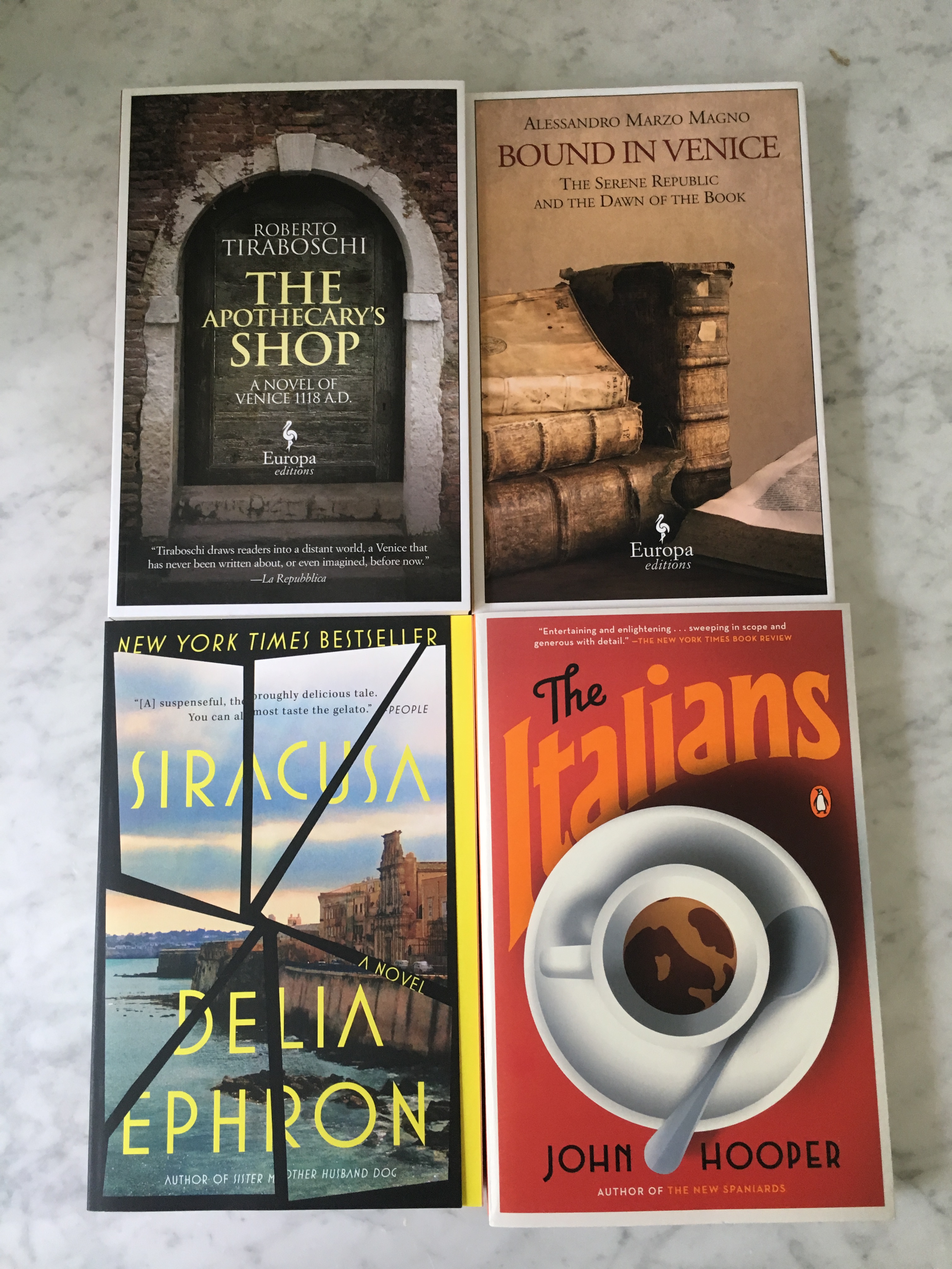 I read Siracusa in Puglia last year, and enjoyed it, though some of the plotlines stretched my credulity. (Bought it for my husband at the airport, a common excuse to get another book in my case – needless to say he didn’t touch it). Can barely wait for your posts post-trip…I really must get out more.