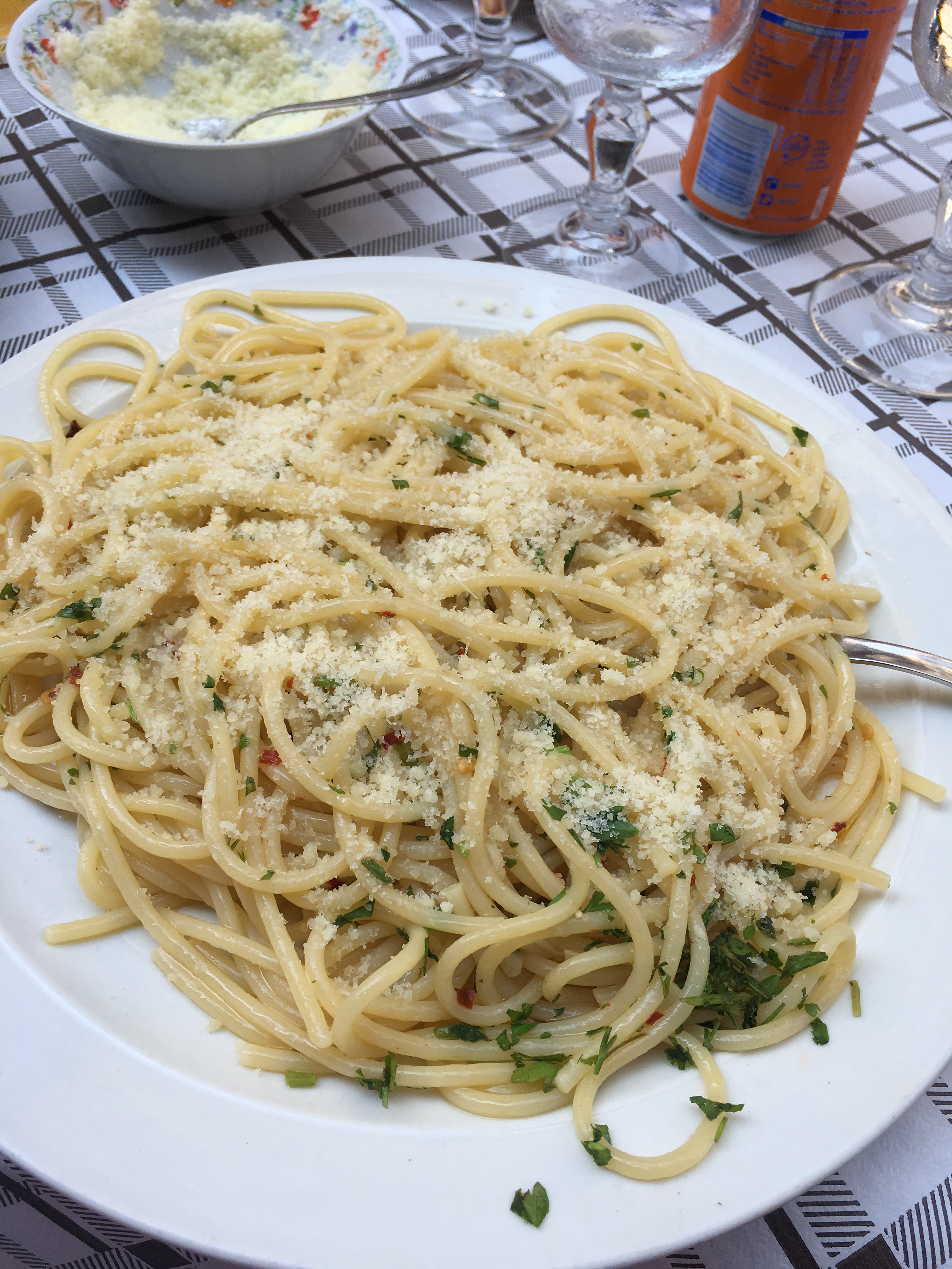 And then it was time for some food. Italian food. After all the fancy food we had on the previous day, all I wanted was a giant plate of pasta. Our hotel directed us to a particular street for good, simple food. There were several al fresco opportunities there, but the one we chose had the most shade and the most empty tables. All the other spots trendy/cute/stylish and were hopping with people. It turned out to be the right decision.