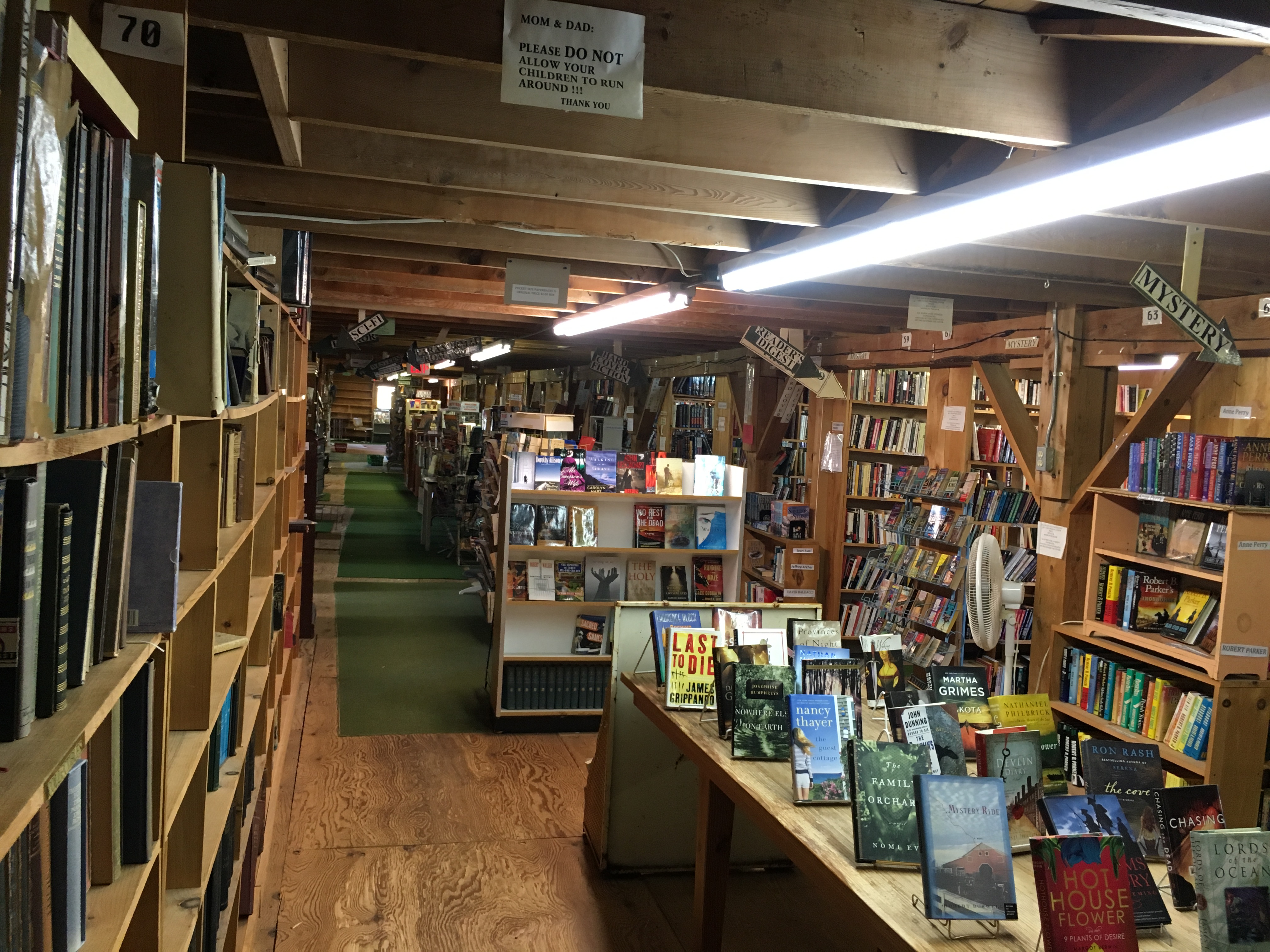 I’ve been to the Big Chicken book barn in Ellsworth, Maine on at least two occasions but it was always with Lucy in tow which meant one of us (not me) had to stay outside with her. And that, of course, meant that my browsing time was limited. On our recent four-day trip to Maine we flew and Lucy stayed at home which meant I had all the time I needed to comb through the stock. This was a good thing, but, the fact that we flew meant that I didn’t have a car trunk I could fill with books.