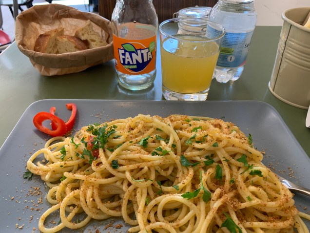 I avoided red sauce, but I couldn’t avoid pasta. At least I didn’t want to avoid pasta. And European Fanta is so much better than U.S. Fanta.