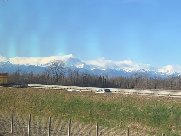 It was nearly impossible to get a good shot of the mountains from the train. Although this photo was snapped closer to Torino, I was surprised how quickly the mountains become visible on the way out of Milan.Not the best picture, but I loved seeing the mountains at the end of the street in Turin.Turin definitely felt more Italian than Milan. I loved the vintage look of this pharmacy.I love the cupola just above the dome and below the spire on the the Mole Antonelliana tower.The sky was an amazing color at dusk.This sandwich may not look all that impressive, but given my sore tummy I hadn’t eat much in the previous 24-hours and I was hungry. The bread was the perfect combo of squishy and fluffy and chewy. The fresh mozzarella and prosciutto were delicious but bland enough to not cause further gastro distress.I was told the region didn’t have much in the way of marble, so in the old days they primarily used brick and terracotta. I was amazed what they did with it in this building.Inside the Palazzo Reale. If you have ever wanted a palace to yourself, go to Turin in February.
