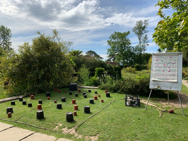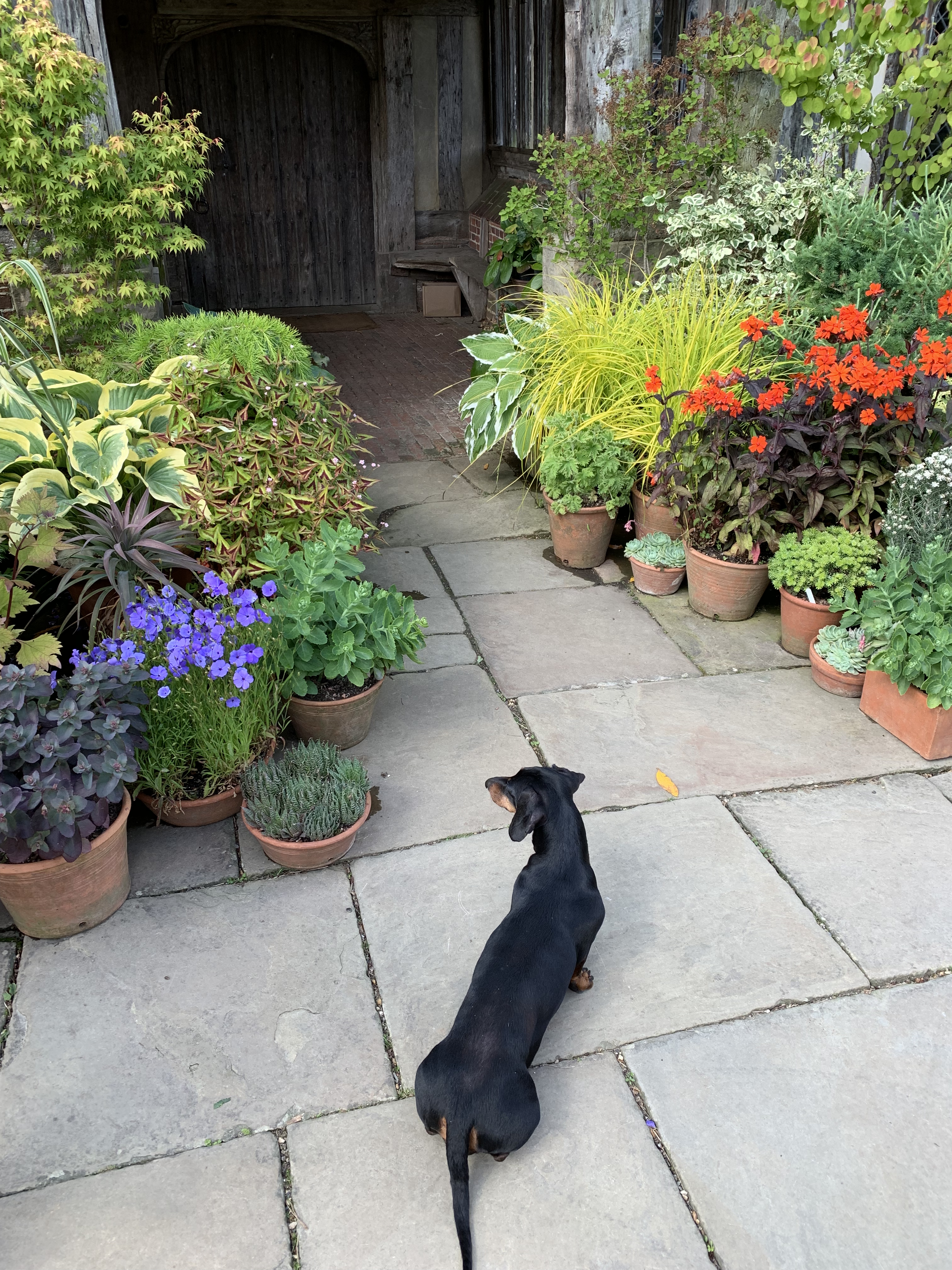 Wildflowers, thatched roof, brick paving make for a charming walk from the car park.Picturesque volunteers at the ticket booth.Dog with pot garden.Our classmates upon arrival. Note how the Lutyens addtion meets the Tudor house.Pay attention, there will be a quiz.I snapped several pictures in the house before I saw the sign telling me not to.Seeds.This made me realize that since we renovated the house, almost five years ago, I haven’t put my rock collection out.I love a pot garden.One of the many glories of Great Dixter is all the things growing out of places they weren’t meant to be.The house on a perfect day.An umbellifer making a good show of it.I don’t think this sempervivum climbed onto the roof on their own.More lovely volunteers.I don’t know how this doesn’t cause water infiltration into the house. It would at my house.Such a lovely iris.Fergus Garrett, head gardener at Great Dixter.You had to be there. This makes sense.Taken on my phone, if you can believe it.I’m not sure the Dachshunds would hold enough water.Such a beautiful gate.The bench is being eaten by plants.The walk up to the prim lawn at the front of the house is this lovely meadow.He almost got a ticket.Fergus’ brother brought this rescue cat back from Afghanistan.