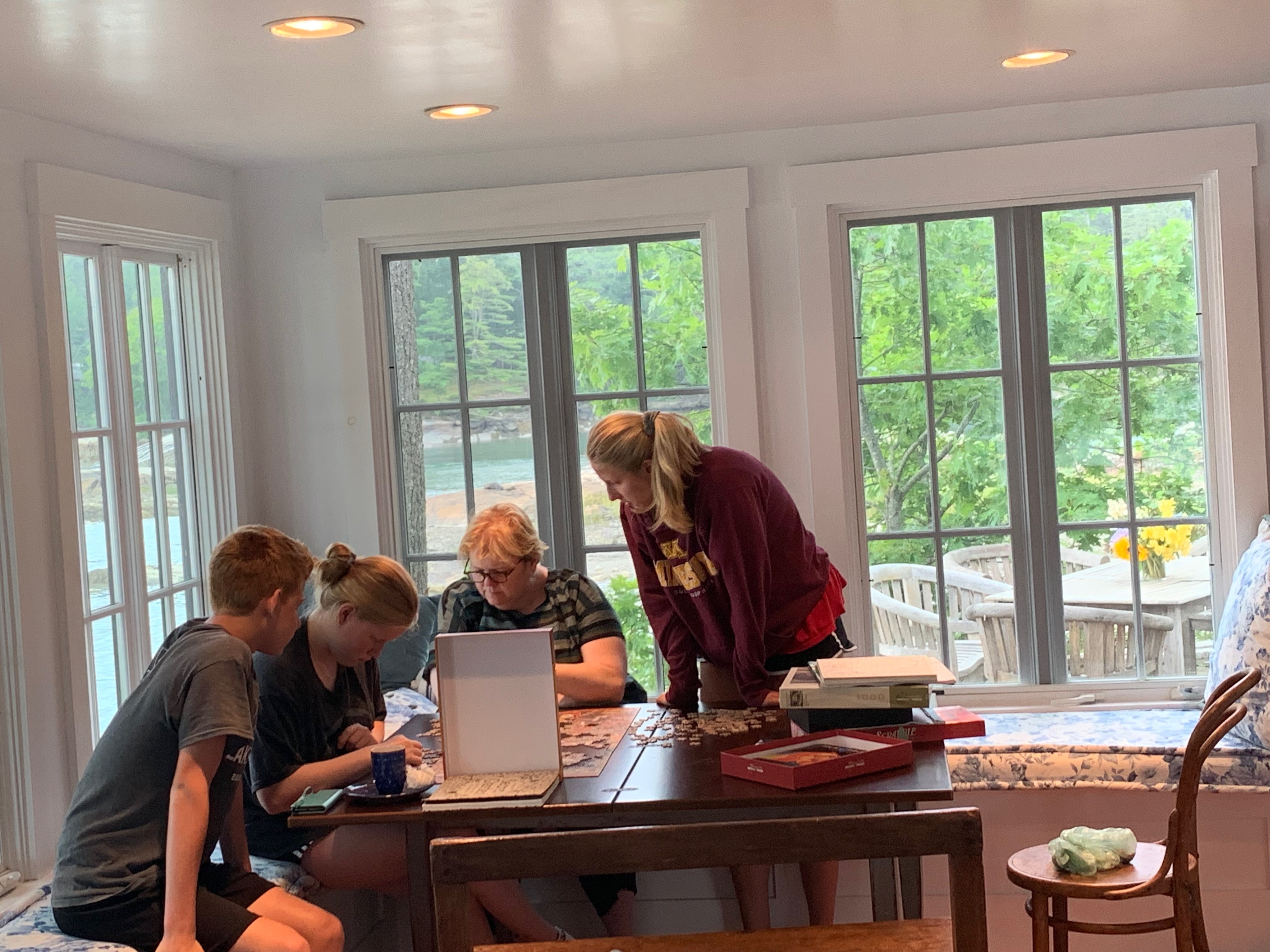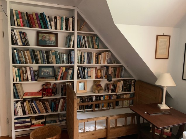 The house itself was amazing. Lots of fun books all over the place to peruse. I had brought plenty of my own to read so I didn’t read any of their rather good fiction collection, but I did enjoy looking at some of the vintage non-fiction they had on science and engineering. Some of those books had been in the house a long time. And, as you will see below, they had the perfect spot for jigsaw puzzles.
