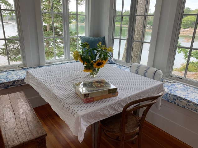 Talk about belated birthday wishes: here it is February 2020 when I got around to catching up on your blog for the past few months’ worth of posts (that’s the only way I can keep track of the worthies on my blogroll, which is obviously a bit too long). In any case, this place y’all rented in Maine seems such a perfectly/conveniently located spot. If you would be willing to share with me the rental details, I would very seriously consider trying to book it for (wait for it) my 72nd birthday, or my 73rd one??? That photo of you reading on the bed in front of the window was particularly inspiration-laden!