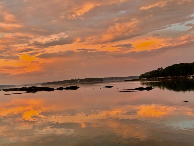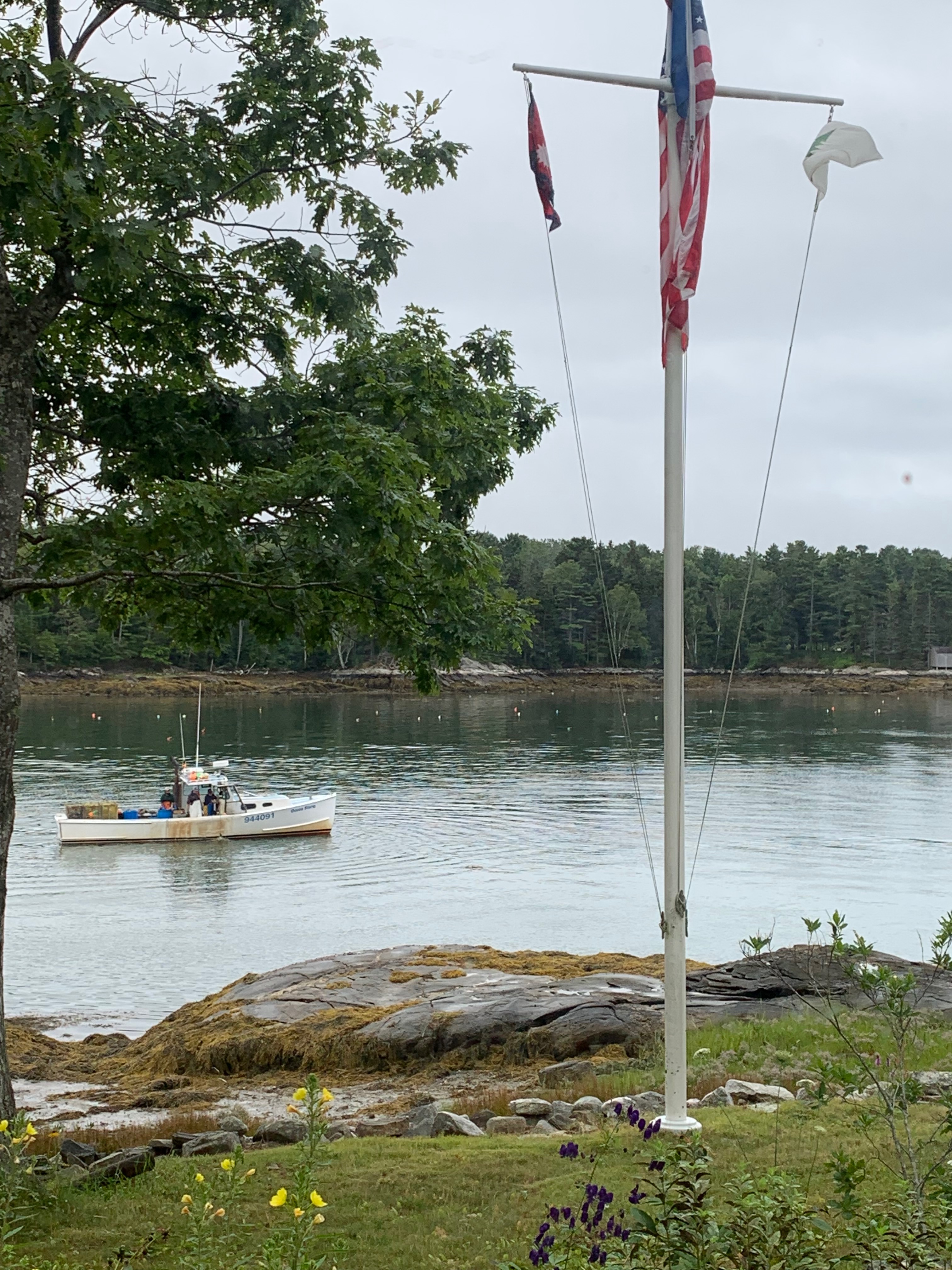 The island was in a protective cove and not at all far from shore. It was only about a three-minute boat trip from the town landing. And at low tide one end of our island was only about 30 feet from shore. But it still felt plenty oceany with lobster boats and those fantastic Maine tides.