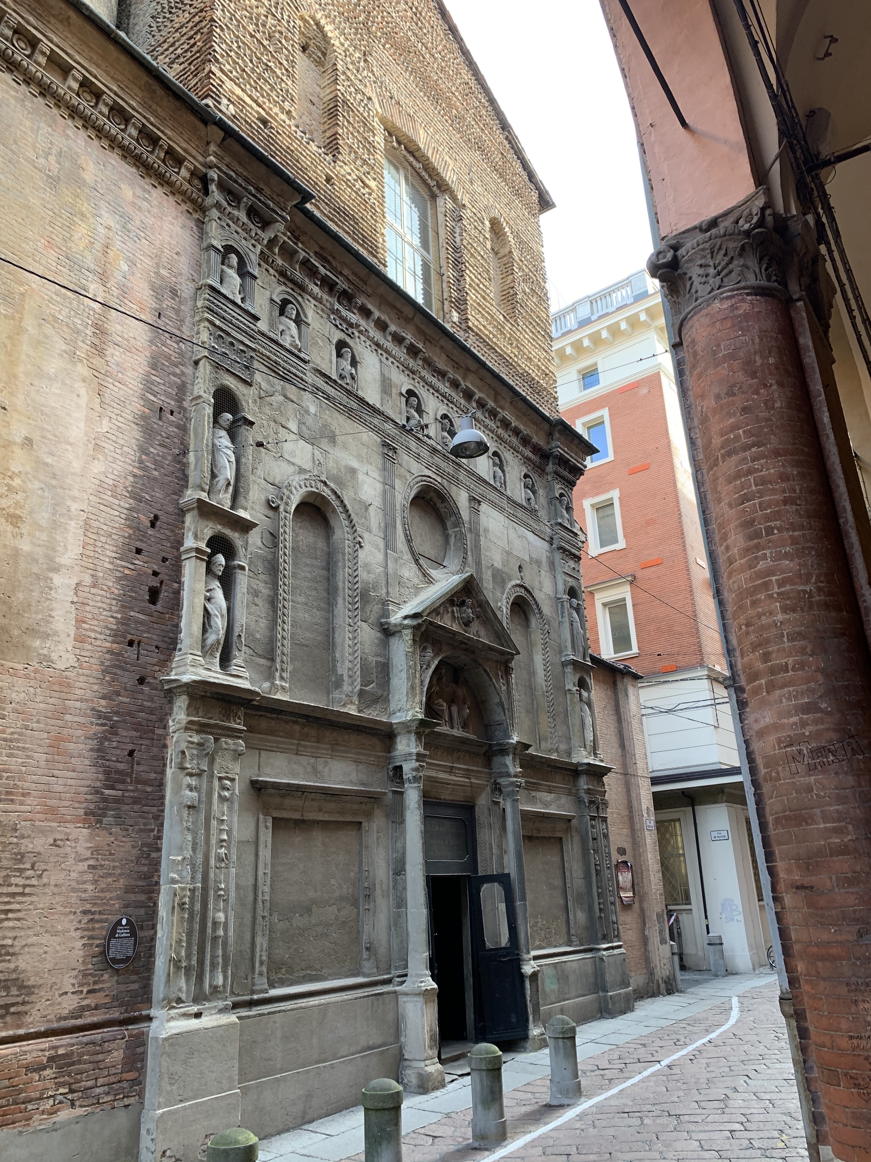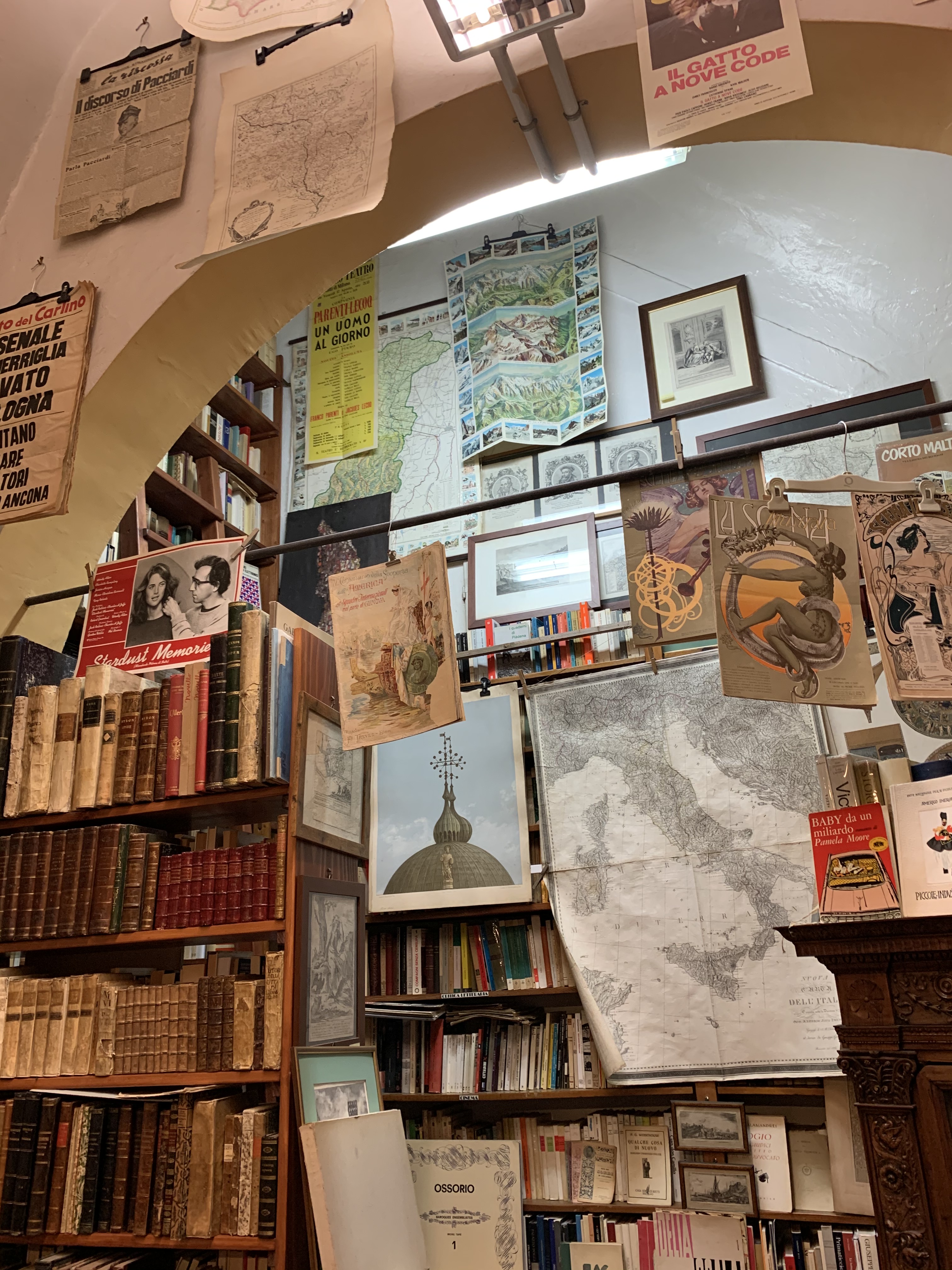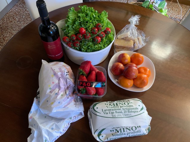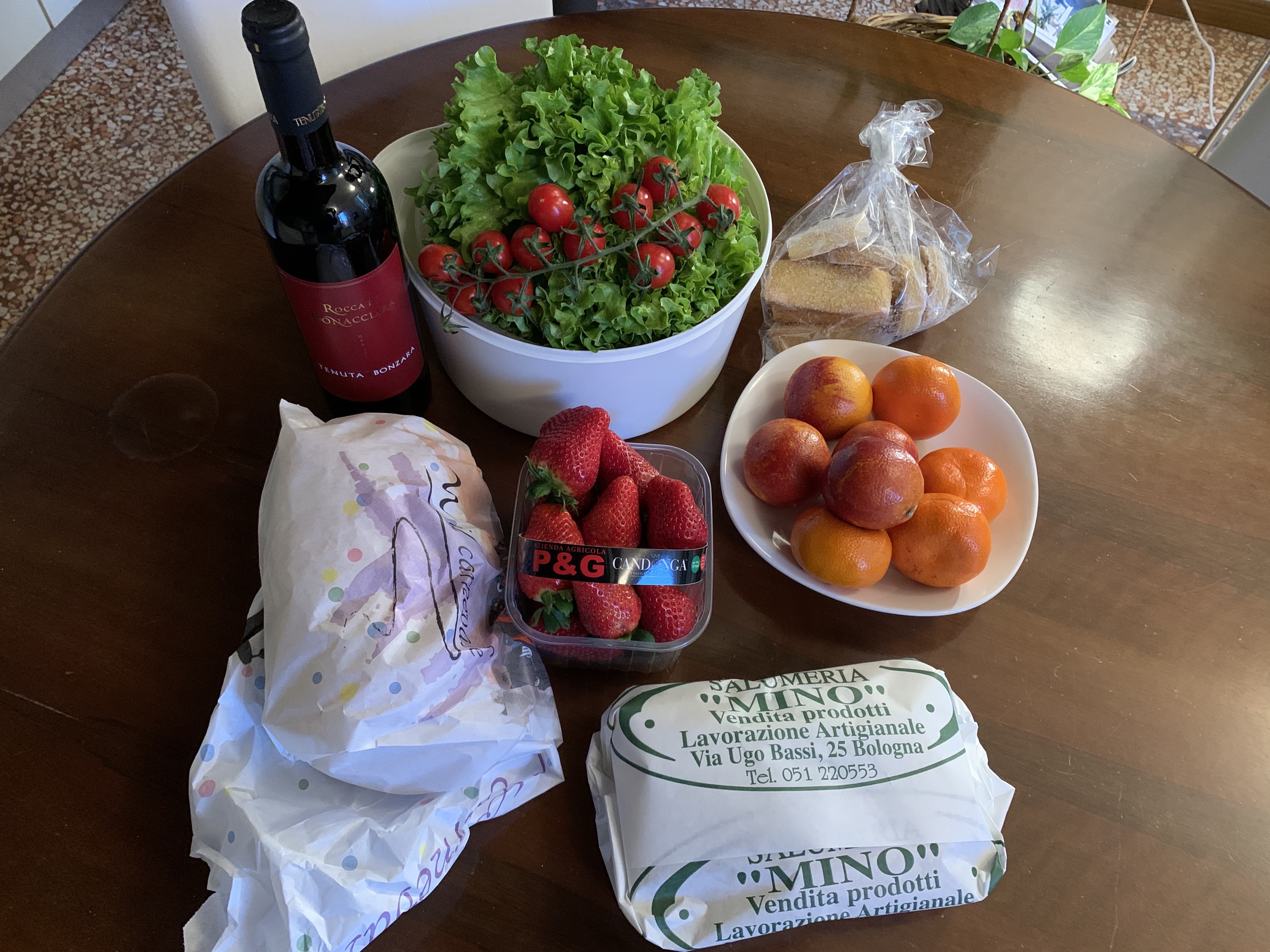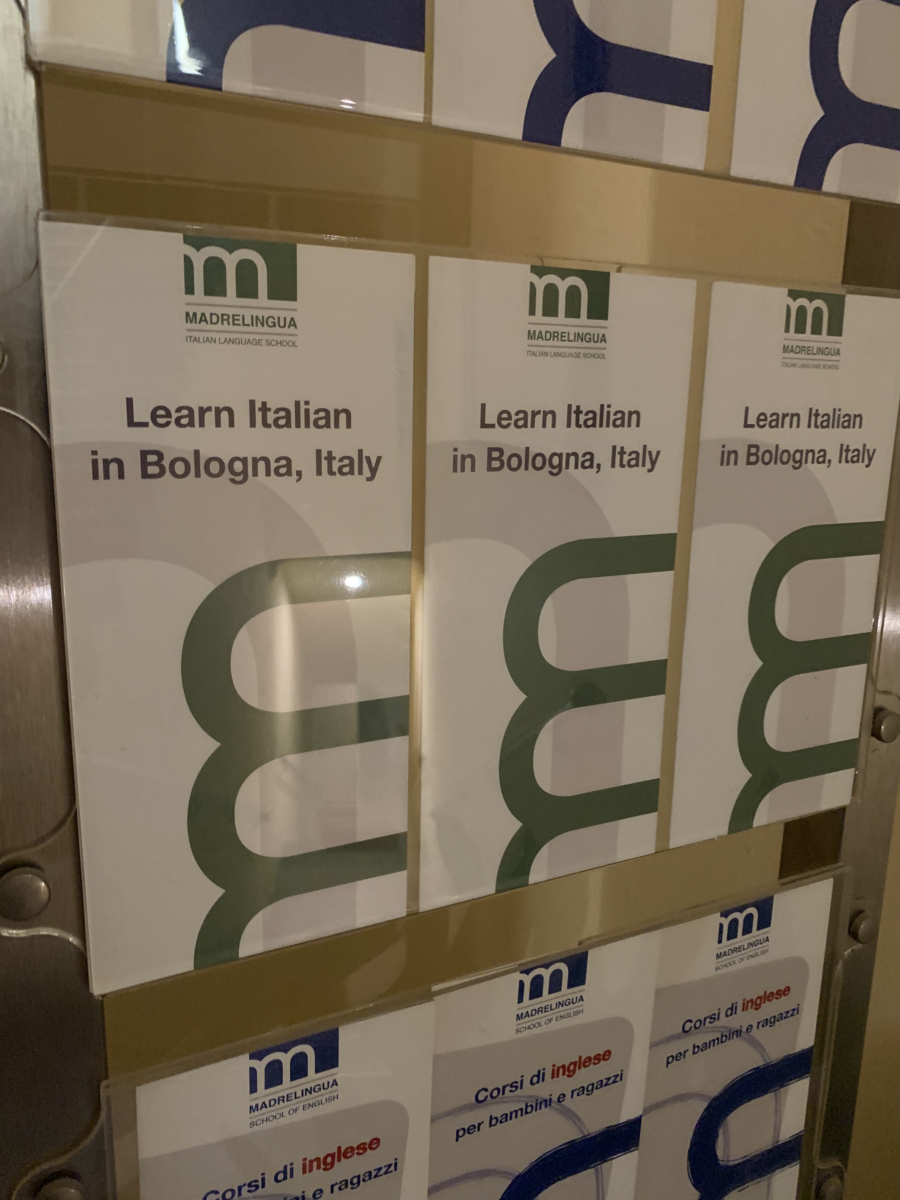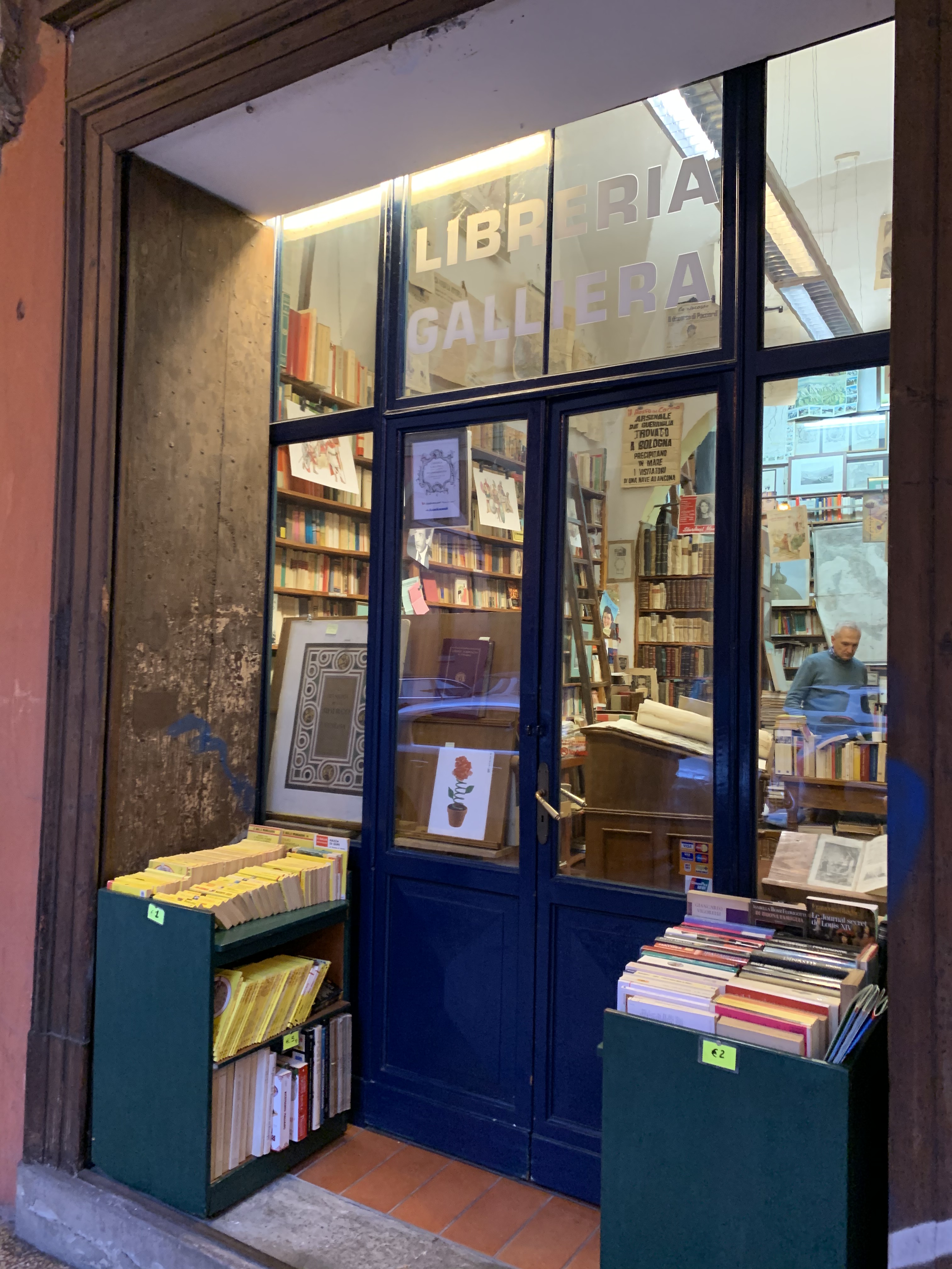 The view from my Air BnB window. It was several days before I realized that that gate opened out onto a street. I’m not sure what I thought was behind it. They were having unusually warm weather for February and one day as I did my homework with the window open the sounds of the birds singing was mixed with one of my neighbors playing Sempre libera at high volume. It was a very Italian moment.The wall of my salotto.The city is layer on layer of architectural styles with poritici everywhere. It would be a good city to walk around in in the rain, but I didn’t see any of that.Bologna’s famous due torri.Everywhere you turn there is some amazing thing to look at. Hard not to act like a tourist.I would love to see an overlay on this spot explaining how all these elements came to be mashed together.Right outside my apartment. It was fun watching the progress during the week.I really enjoyed Madrelingua. I know there are programs like this all over Italy, but I kind of fell in love with this one and assume I won’t be so lucky if I try one of the others in a another city.The ceiling of the room where I had two hours of grammar and two hours of conversation each day.Actually, now that I think of it, I think this is the room where I had conversation and grammar. The other one was the room for my post-lunch intensive session.Every day after grammar lessons all of the students from the various classes walked to a nearby bar for coffee and Italian conversations. With the fun instructors rapping our knuckles if we retreated into English. My class had two students from Australia, and one each from Germany, South Africa, India, and Moldova.Unlike learning in the US all of the teaching is in Italian so even the explanations to questions are in Italian. Challenging but pretty satisfying. Although most of my classmates seemed to be better than me, I will say that on the first day my instructor complimented my pronunciation and was surprised to learn that I grew up in the US.They advertised this Unicorn Latte and said it had no artificial coloring in it so one day I had to order it. It was kind of like chai with ginger and other things in it. I took one sip. But it made for a good picture.Bologna’s trademark tortellini in brodo (broth) expertly executed at Oltre.Take out pasta and European Fanta (so much better then the US version). I saved the second pasta for another day.Much to my delight, my good friend Ron who lives in the Netherlands was on break from his teaching job and decided at the last minute to join me in Bologna. The day of his arrival I walked by a food market and couldn’t resist buying somethings. Those strawberries were red all the way through. The pinkish citrus looked a bit like a blood orange but were smaller and sweeter. The tomatoes were unbelievably good. Even in the height of summer at a good farmer’s market you can’t get tomatoes like that in the US. The flavor is astonishing. It must be the soil, or the water, or something.Someone else made the fresh tortellini, but I made he sauce.The kind of cookies that sneak up on you when it comes to deliciousness.Right on the corner near my apartment. I never bought anything there but I loved looking in the windows.Very cute used book shop near my apartment. In Italy mysteries, detective novels and books of that type typically have yellow colors and are referred to as i gialli (the yellows).I loved the patina of this place.Loved this place.The anatomical library.I didn’t know these existed, but once I leafed through one I had to have them. But then I saw the price for the set and decided not to.Then later that night I looked them up on line to see about getting them when I got back to the States and saw that some of them were really hard to find and really expensive. So I went back the next day and bought the lot of them. It sure made packing my one small bag interesting.