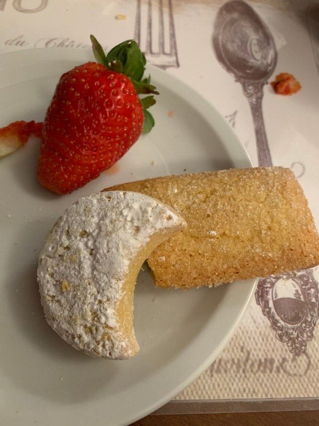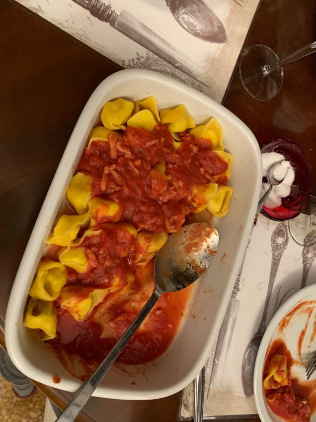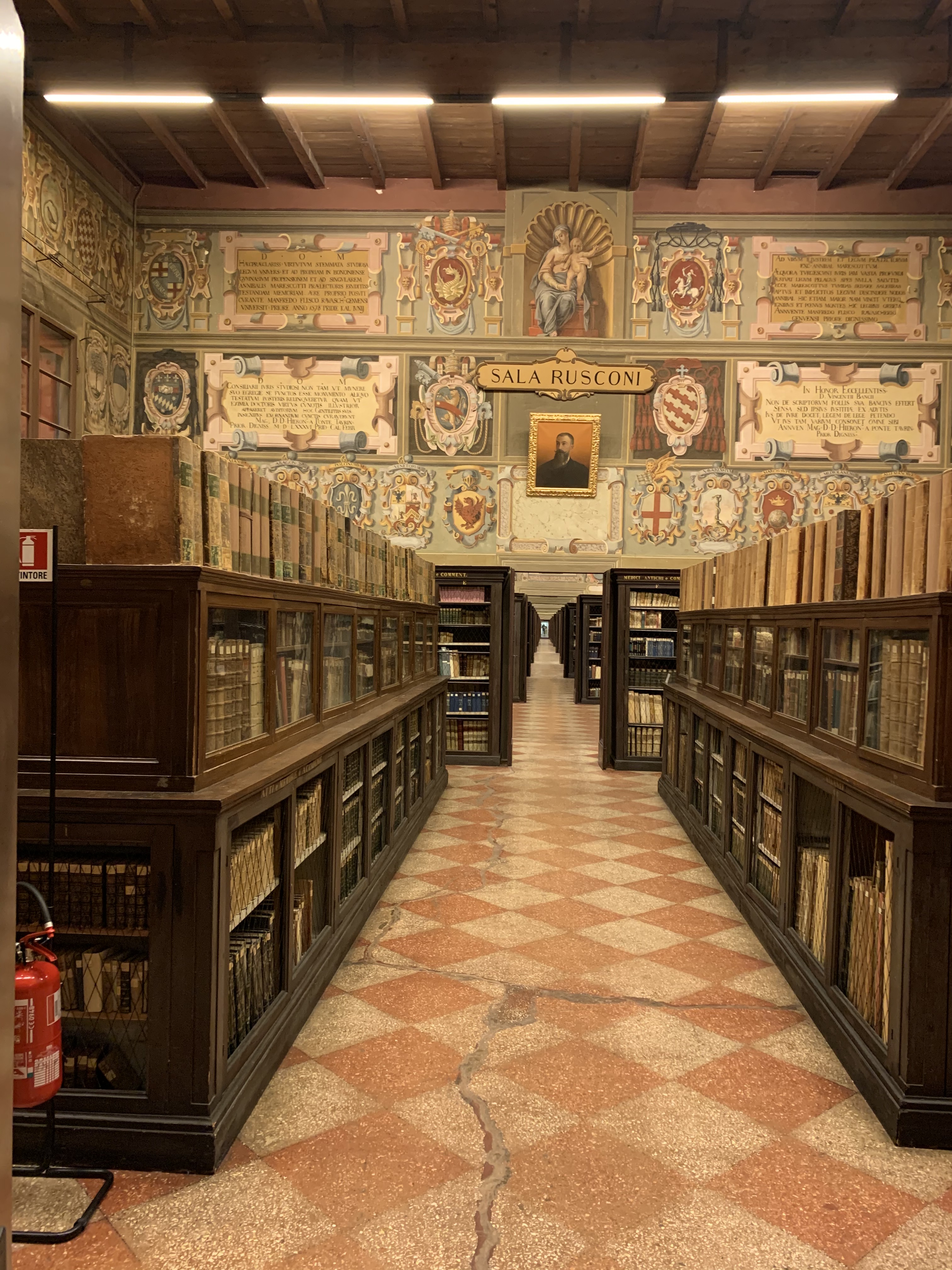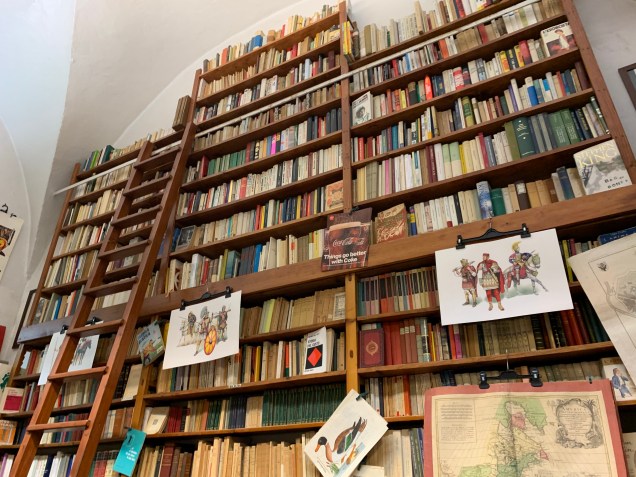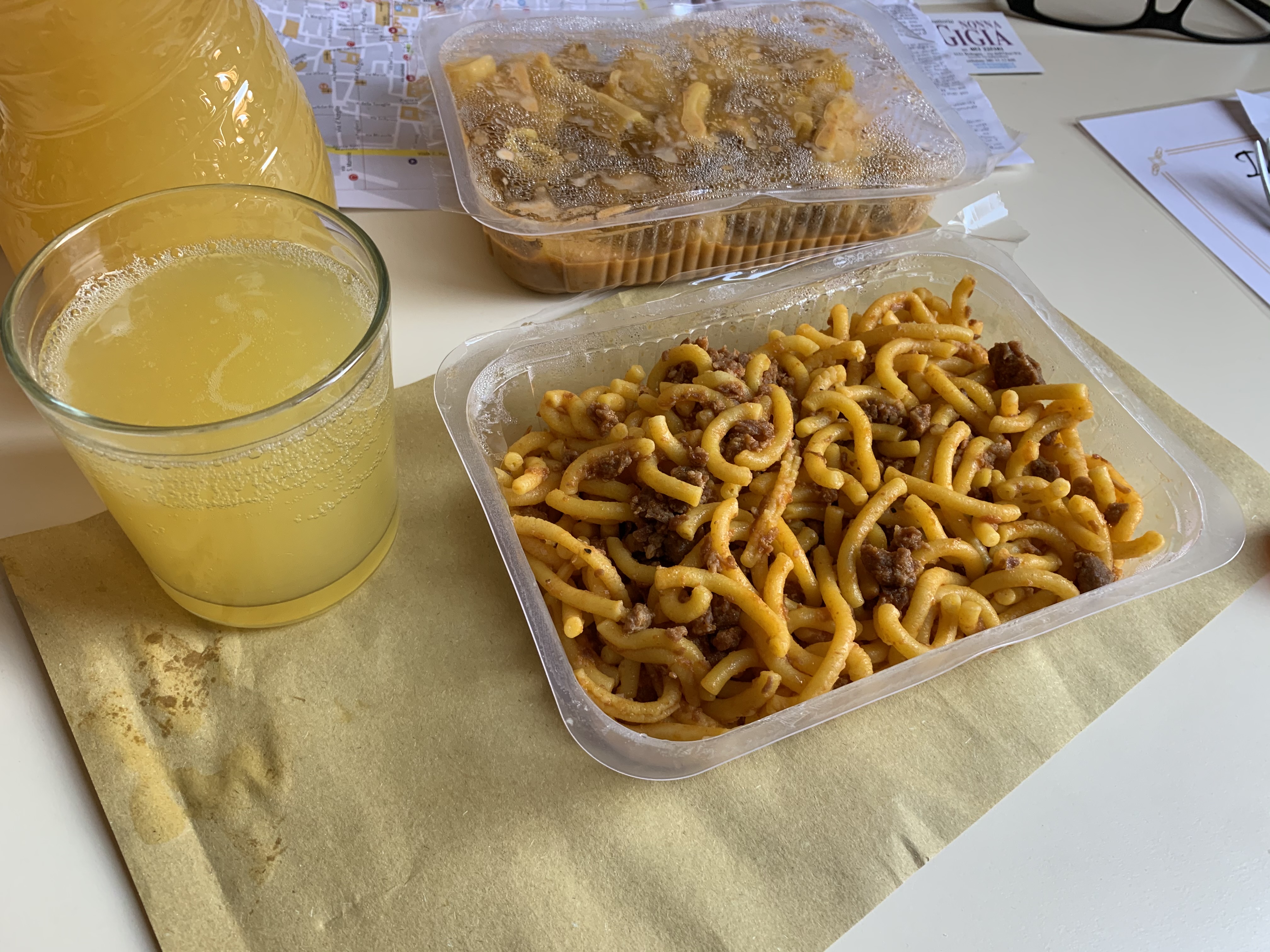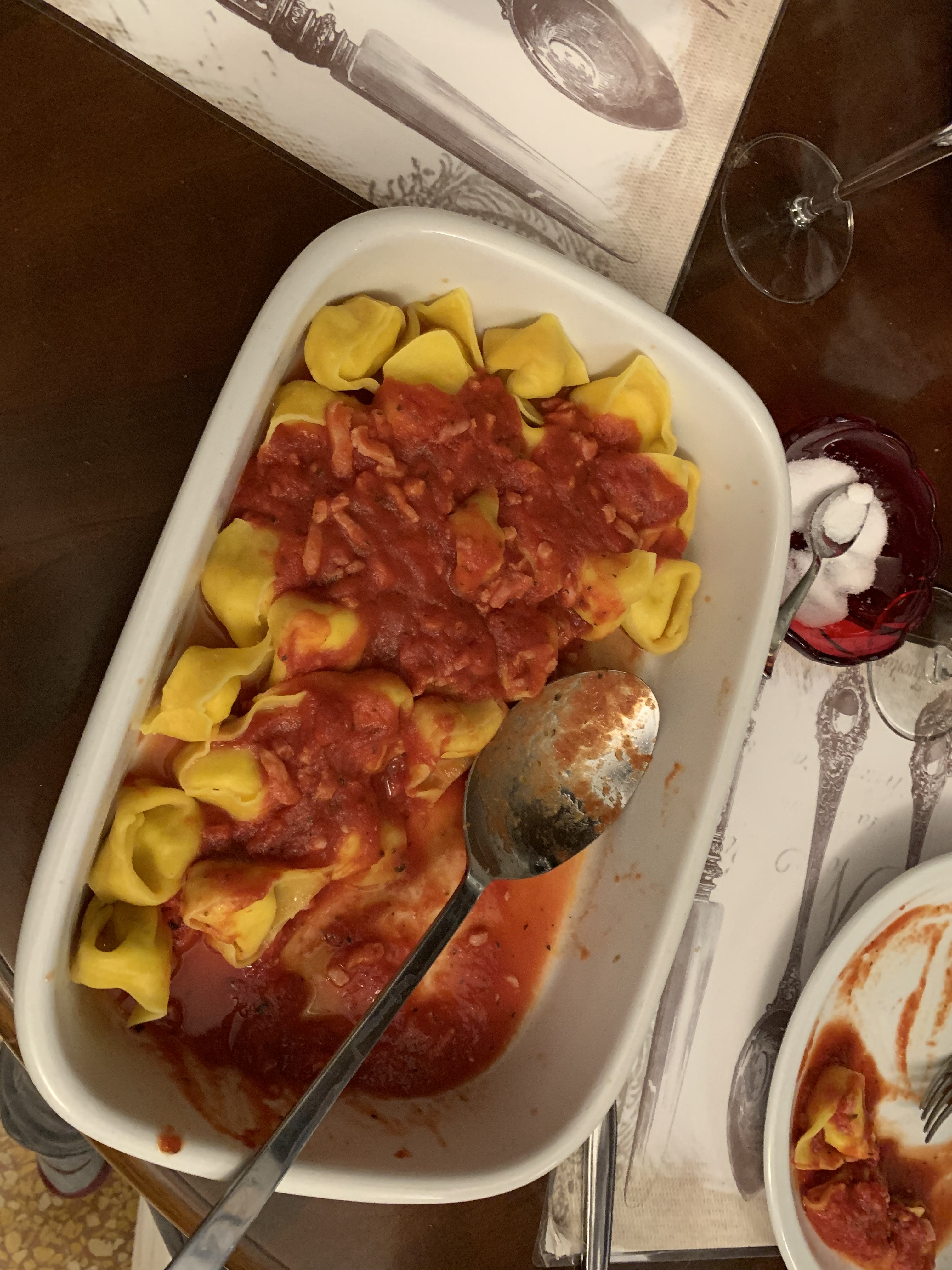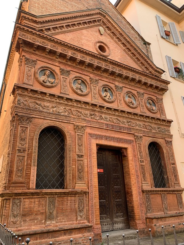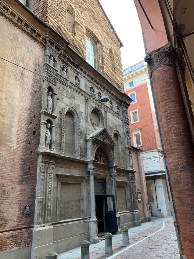 The view from my Air BnB window. It was several days before I realized that that gate opened out onto a street. I’m not sure what I thought was behind it. They were having unusually warm weather for February and one day as I did my homework with the window open the sounds of the birds singing was mixed with one of my neighbors playing Sempre libera at high volume. It was a very Italian moment.The wall of my salotto.The city is layer on layer of architectural styles with poritici everywhere. It would be a good city to walk around in in the rain, but I didn’t see any of that.Bologna’s famous due torri.Everywhere you turn there is some amazing thing to look at. Hard not to act like a tourist.I would love to see an overlay on this spot explaining how all these elements came to be mashed together.Right outside my apartment. It was fun watching the progress during the week.I really enjoyed Madrelingua. I know there are programs like this all over Italy, but I kind of fell in love with this one and assume I won’t be so lucky if I try one of the others in a another city.The ceiling of the room where I had two hours of grammar and two hours of conversation each day.Actually, now that I think of it, I think this is the room where I had conversation and grammar. The other one was the room for my post-lunch intensive session.Every day after grammar lessons all of the students from the various classes walked to a nearby bar for coffee and Italian conversations. With the fun instructors rapping our knuckles if we retreated into English. My class had two students from Australia, and one each from Germany, South Africa, India, and Moldova.Unlike learning in the US all of the teaching is in Italian so even the explanations to questions are in Italian. Challenging but pretty satisfying. Although most of my classmates seemed to be better than me, I will say that on the first day my instructor complimented my pronunciation and was surprised to learn that I grew up in the US.They advertised this Unicorn Latte and said it had no artificial coloring in it so one day I had to order it. It was kind of like chai with ginger and other things in it. I took one sip. But it made for a good picture.Bologna’s trademark tortellini in brodo (broth) expertly executed at Oltre.Take out pasta and European Fanta (so much better then the US version). I saved the second pasta for another day.Much to my delight, my good friend Ron who lives in the Netherlands was on break from his teaching job and decided at the last minute to join me in Bologna. The day of his arrival I walked by a food market and couldn’t resist buying somethings. Those strawberries were red all the way through. The pinkish citrus looked a bit like a blood orange but were smaller and sweeter. The tomatoes were unbelievably good. Even in the height of summer at a good farmer’s market you can’t get tomatoes like that in the US. The flavor is astonishing. It must be the soil, or the water, or something.Someone else made the fresh tortellini, but I made he sauce.The kind of cookies that sneak up on you when it comes to deliciousness.Right on the corner near my apartment. I never bought anything there but I loved looking in the windows.Very cute used book shop near my apartment. In Italy mysteries, detective novels and books of that type typically have yellow colors and are referred to as i gialli (the yellows).I loved the patina of this place.Loved this place.The anatomical library.I didn’t know these existed, but once I leafed through one I had to have them. But then I saw the price for the set and decided not to.Then later that night I looked them up on line to see about getting them when I got back to the States and saw that some of them were really hard to find and really expensive. So I went back the next day and bought the lot of them. It sure made packing my one small bag interesting.