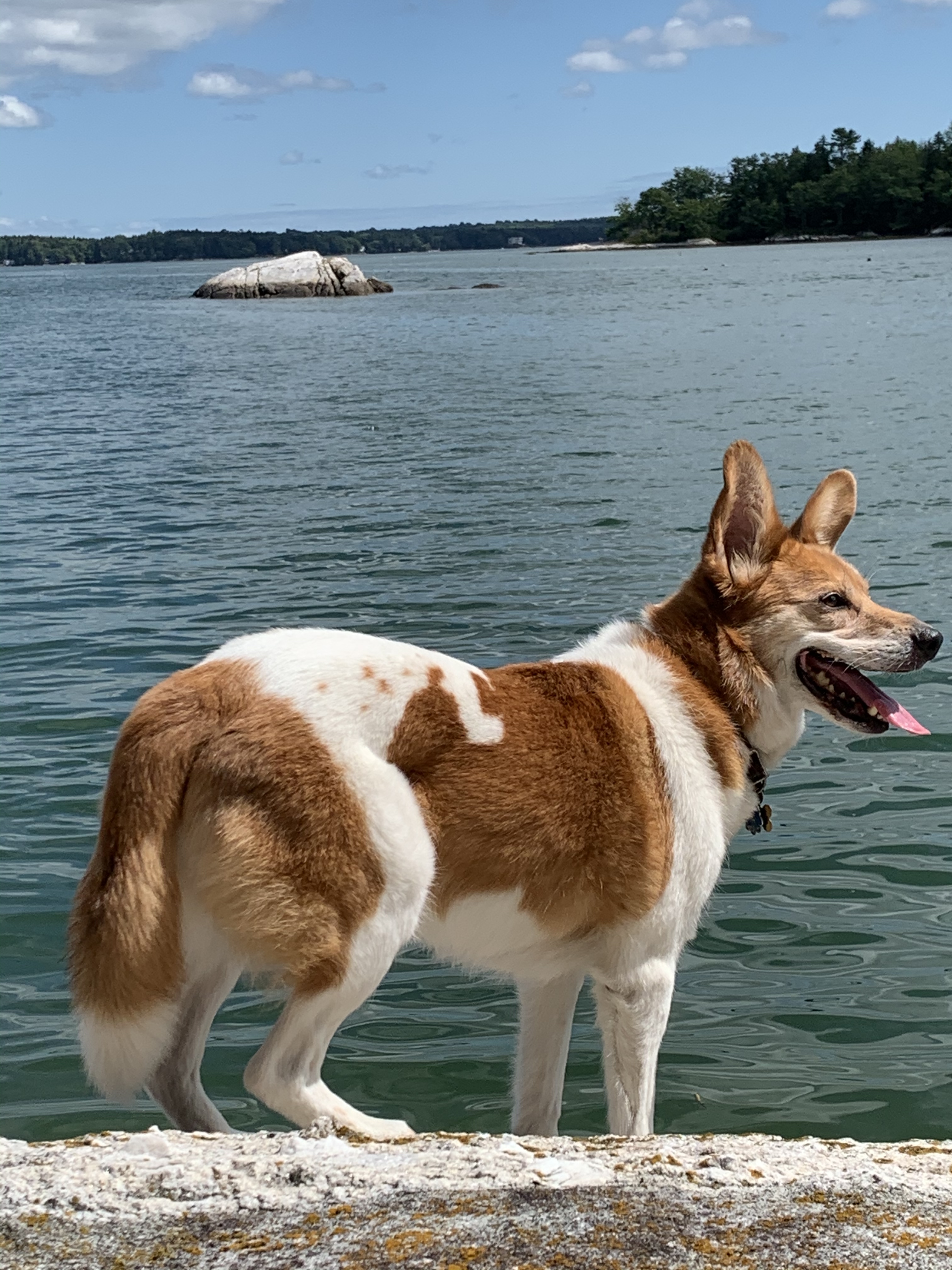 Last month we were on a tiny island in Maine. Four and half acres surrounded by water. This meant Lucy could be off leash for an entire week. I know the dog days of summer tends to connote the most unbearably hot parts of the summer, but in this case the weather was an absolute delight. In fact it was cool enough that we never even jumped in the ocean. Lovely warmish days with cool breezes. So lovely. I will have more pictures from that trip, but for now, how about a gallery of Lucy at her cutest.