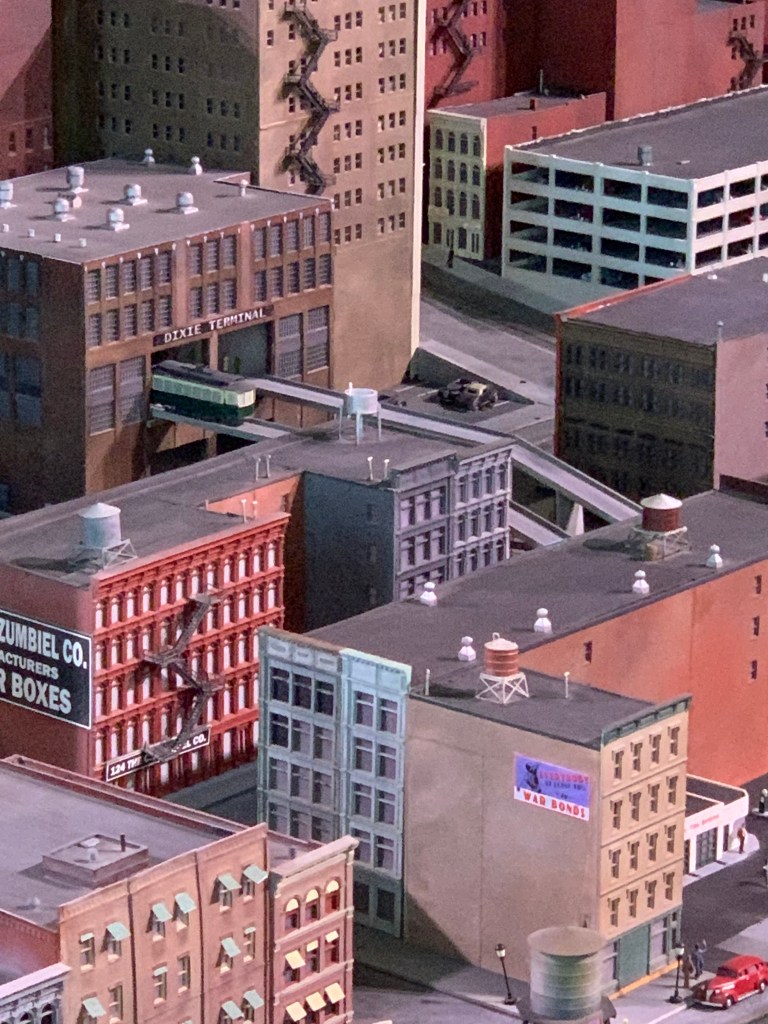 As if the fabulous building wasn’t enough, the history museum housed in one of its wings had enormous scale models of downtown Cincinnati. The biggest of them depicts the city in the 1940s. Another one, showing the train station is from the 1930s, and then there were other parts of town sown in other eras. If they had given me a stool to sit on, I would have stayed in front of the models all day. I lived out so many time travel fantasies while I studied these fantastic models.
