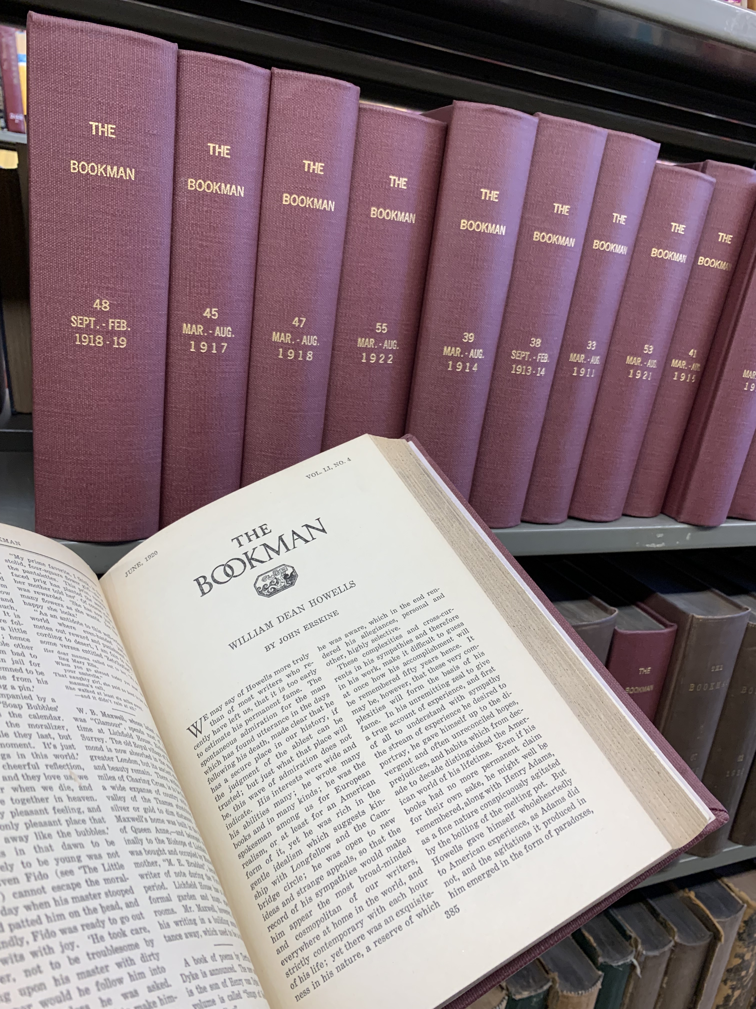 I worry about how many of these bound volumes of The Bookman I would buy if I lived in Cincinnati. Shelves and shelves of them. They had other bound periodicals as well, that would have provided years of good browsing, buying, and reading. Maybe I need to retire to Cincinnati.