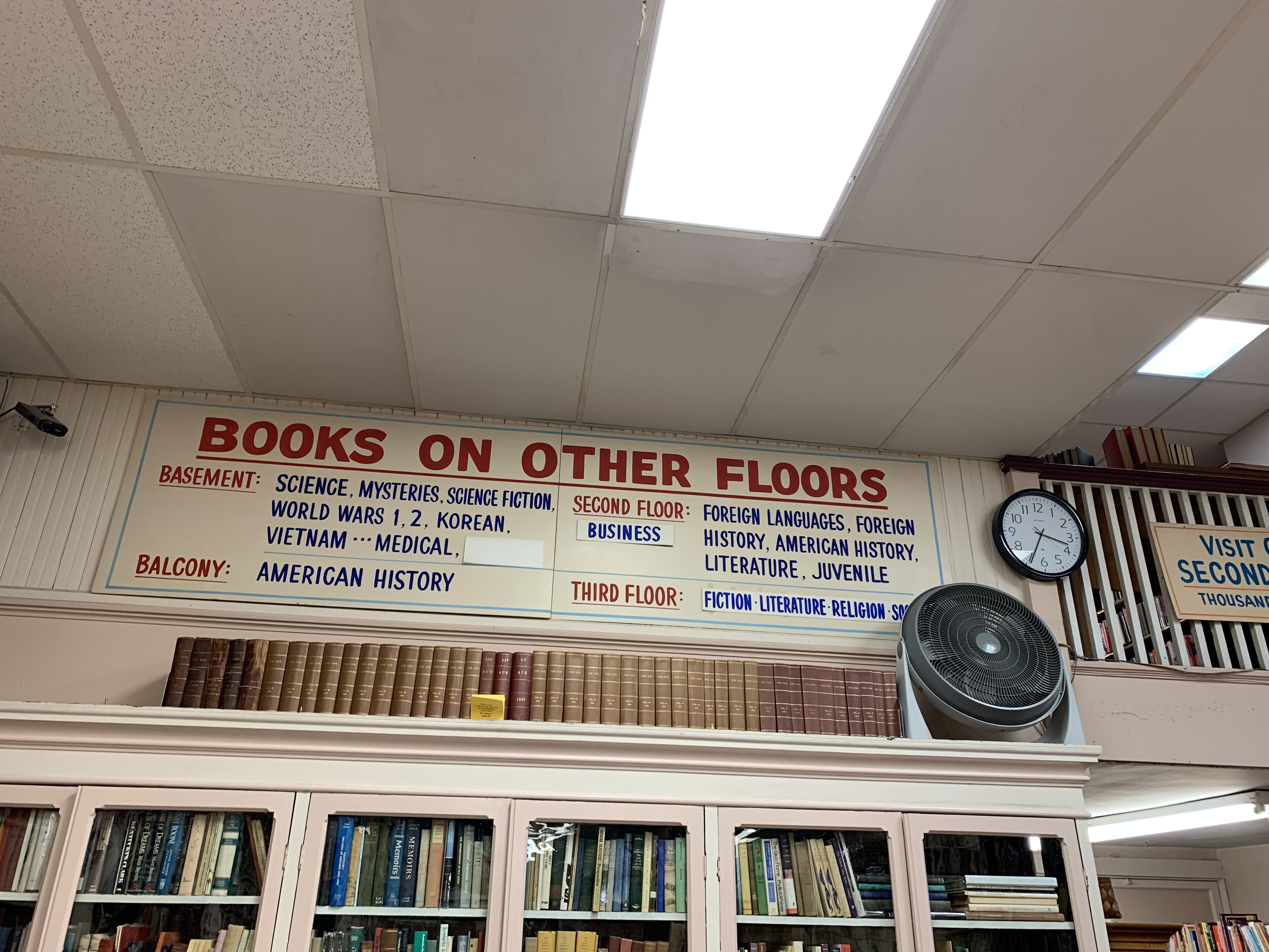 On my way to Cincinnati last month to hear an orchestra concert, as an afterthought, I Googled “used books Cincinnati.” Much to my delight, there was a promising looking used bookstore about three blocks from my hotel. And let me tell you, Ohio Book Store is the real deal. It is exactly the kind of bookstore I like. It’s big (five floors). It has a big general fiction section that was full of the kind of 20th century middlish brow fiction I tend to like. And the best part is, the internet doesn’t seem to exist in this place. In fact, the whole place gave off a distinct, lost in time kind of vibe. The building was old, the signs were old, the phone was old, and blessedly, the stock was old.