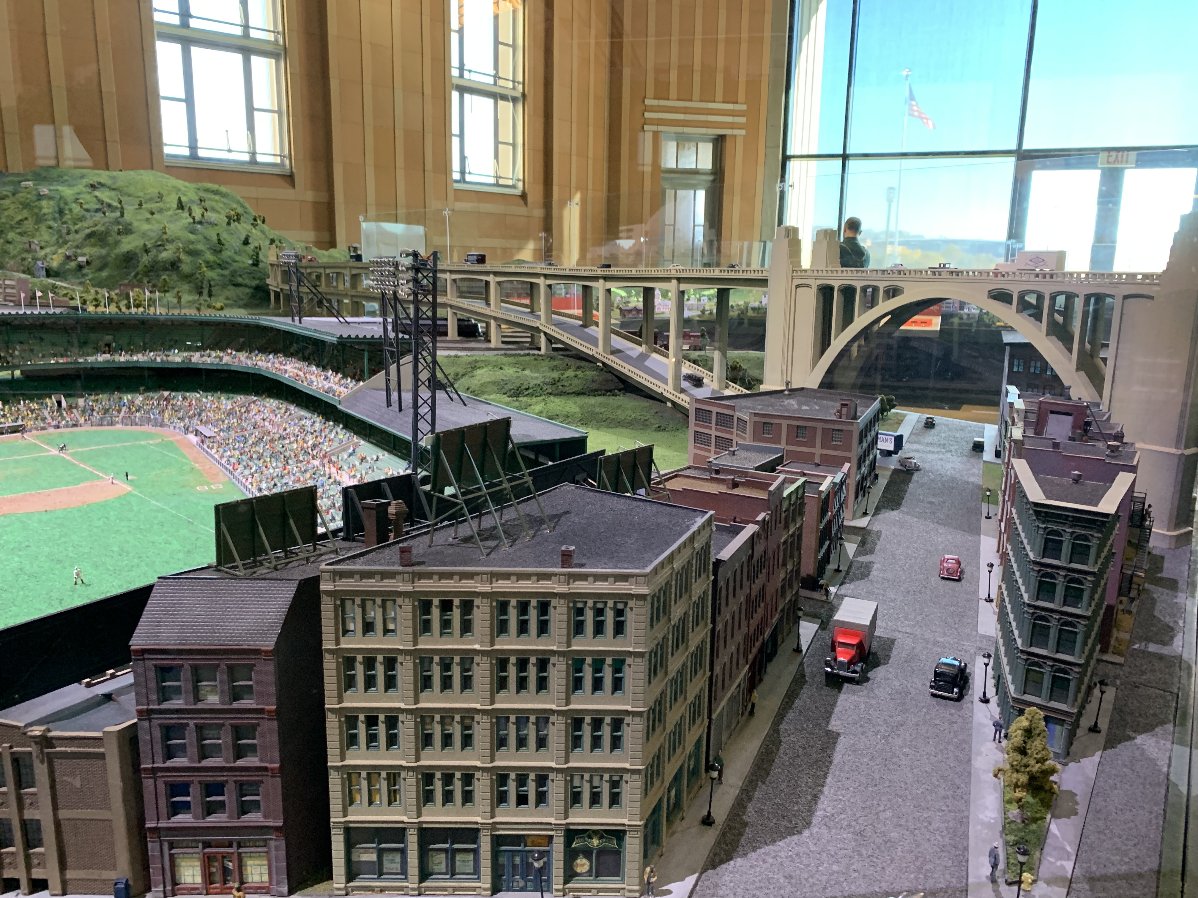 As if the fabulous building wasn’t enough, the history museum housed in one of its wings had enormous scale models of downtown Cincinnati. The biggest of them depicts the city in the 1940s. Another one, showing the train station is from the 1930s, and then there were other parts of town sown in other eras. If they had given me a stool to sit on, I would have stayed in front of the models all day. I lived out so many time travel fantasies while I studied these fantastic models.