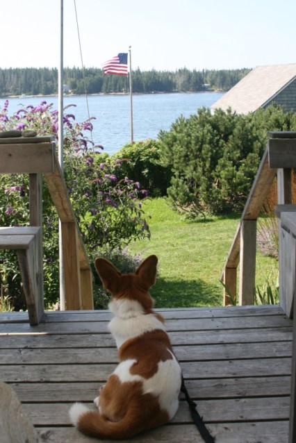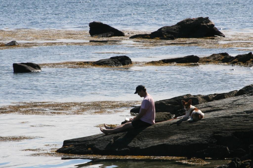 Our whole trip to Maine was wonderful, but there was one day early on when we were staying in Port Clyde when everything was absolutely perfect. The weather was glorious, the kind of weather where you keep repeating, even to yourself, how wonderful the weather is. The sun was warm, the breezes were cool and fresh. And for all the bookhunting I did on the trip, this was a day where our only excursion was a lovely evening walk with Lucy. We read, lazed, napped. It just doesn’t get better.