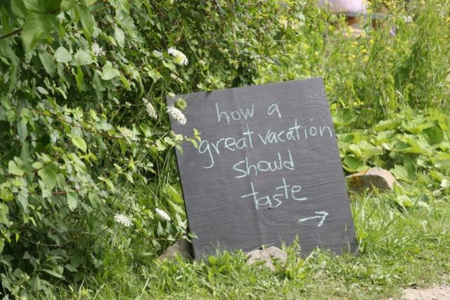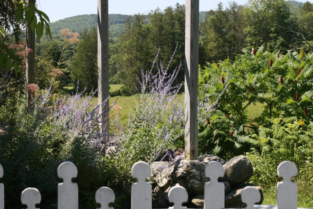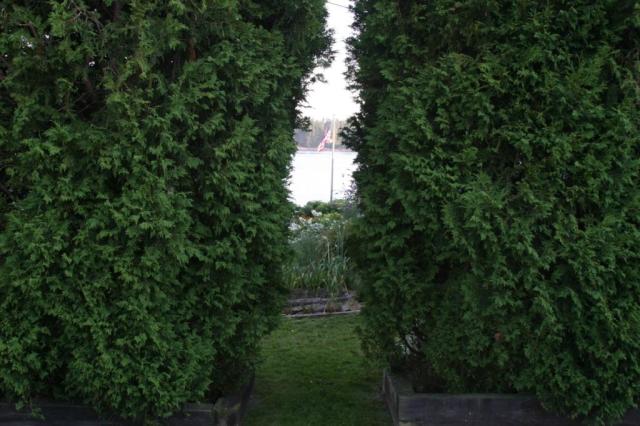 | This wonderful hedge screens our cottage garden from the little used road. And the garden was full of greens that we picked each night for dinner. |