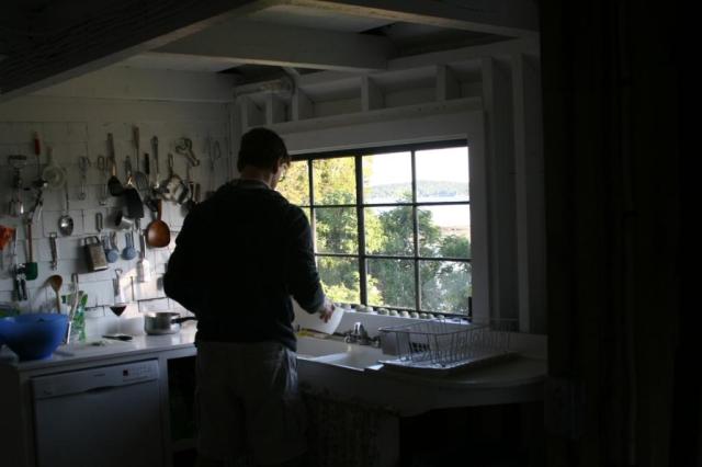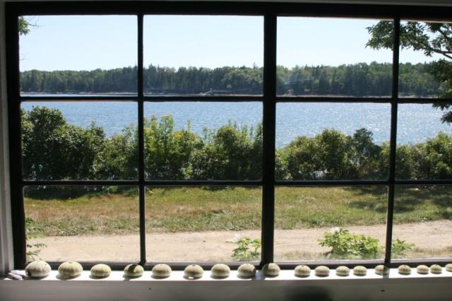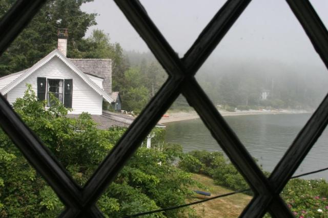 We experienced all kinds of weather while we were in Maine and all of it was better than the crazy heat and humidity of Washington, DC. Pretty much everyday the temperatures were about 30 degrees (F) cooler than they were in DC. The fog was quite lovely. It was wonderful to sit on the porch and read with these foggy views. There were some days were the fog condensed on the window screens.