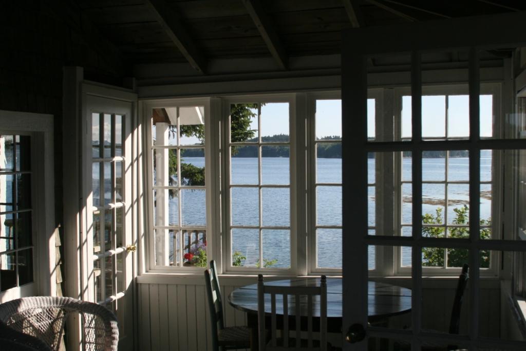 We experienced all kinds of weather while we were in Maine and all of it was better than the crazy heat and humidity of Washington, DC. Pretty much everyday the temperatures were about 30 degrees (F) cooler than they were in DC. The fog was quite lovely. It was wonderful to sit on the porch and read with these foggy views. There were some days were the fog condensed on the window screens.