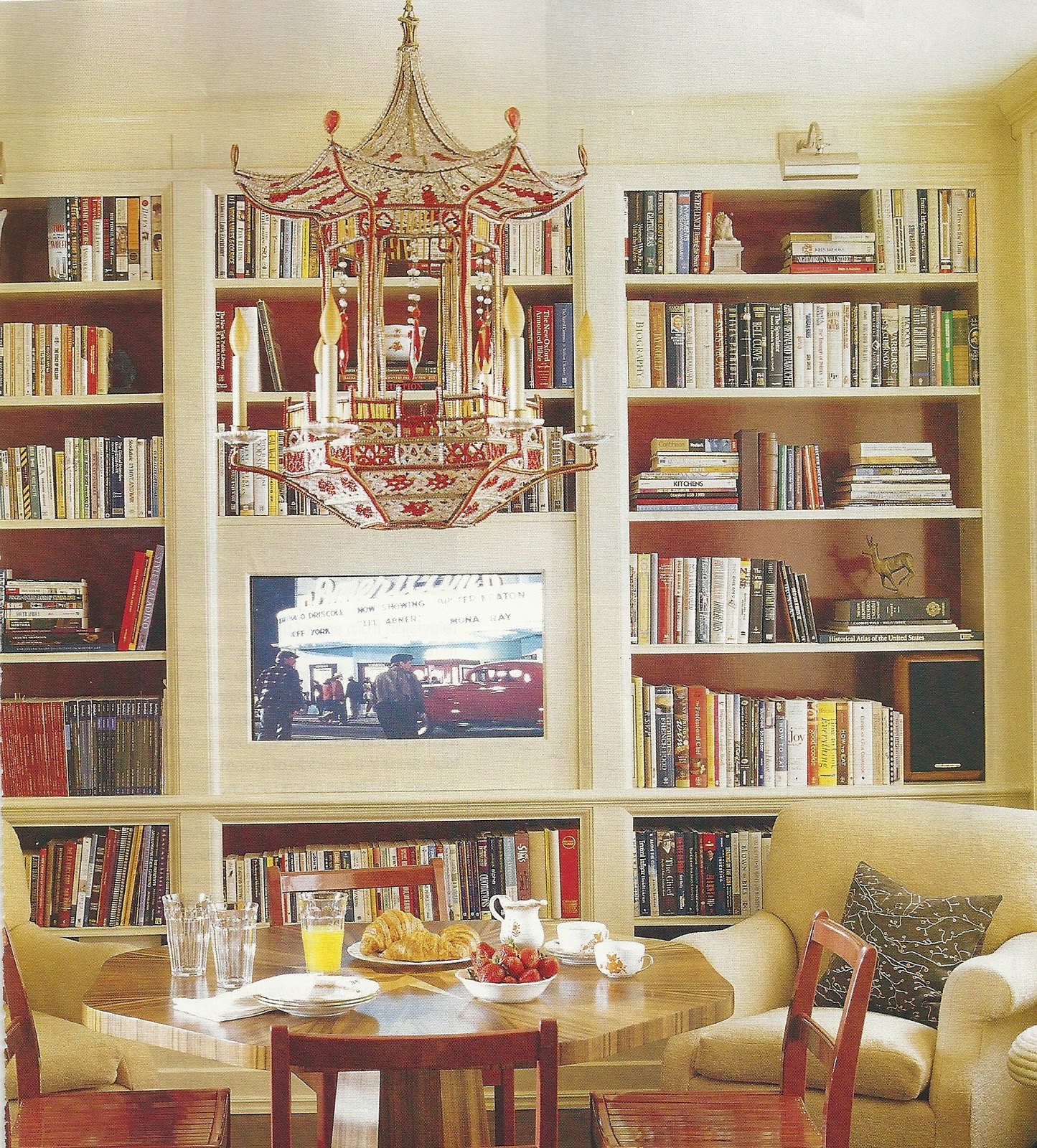 I actually have two versions of this very same picture. The one you see above was culled from a magazine at some point. The other is in the book Books Do Furnish a Room by Leslie Geddes-Brown. It was kind of fun to look for the changes in the placement of the books between the two pictures. There were some additions and some rearranging, it was like going on a treasure hunt. A picture of this library/dining room taken from another angle is also the cover image of the Geddes-Brown book.