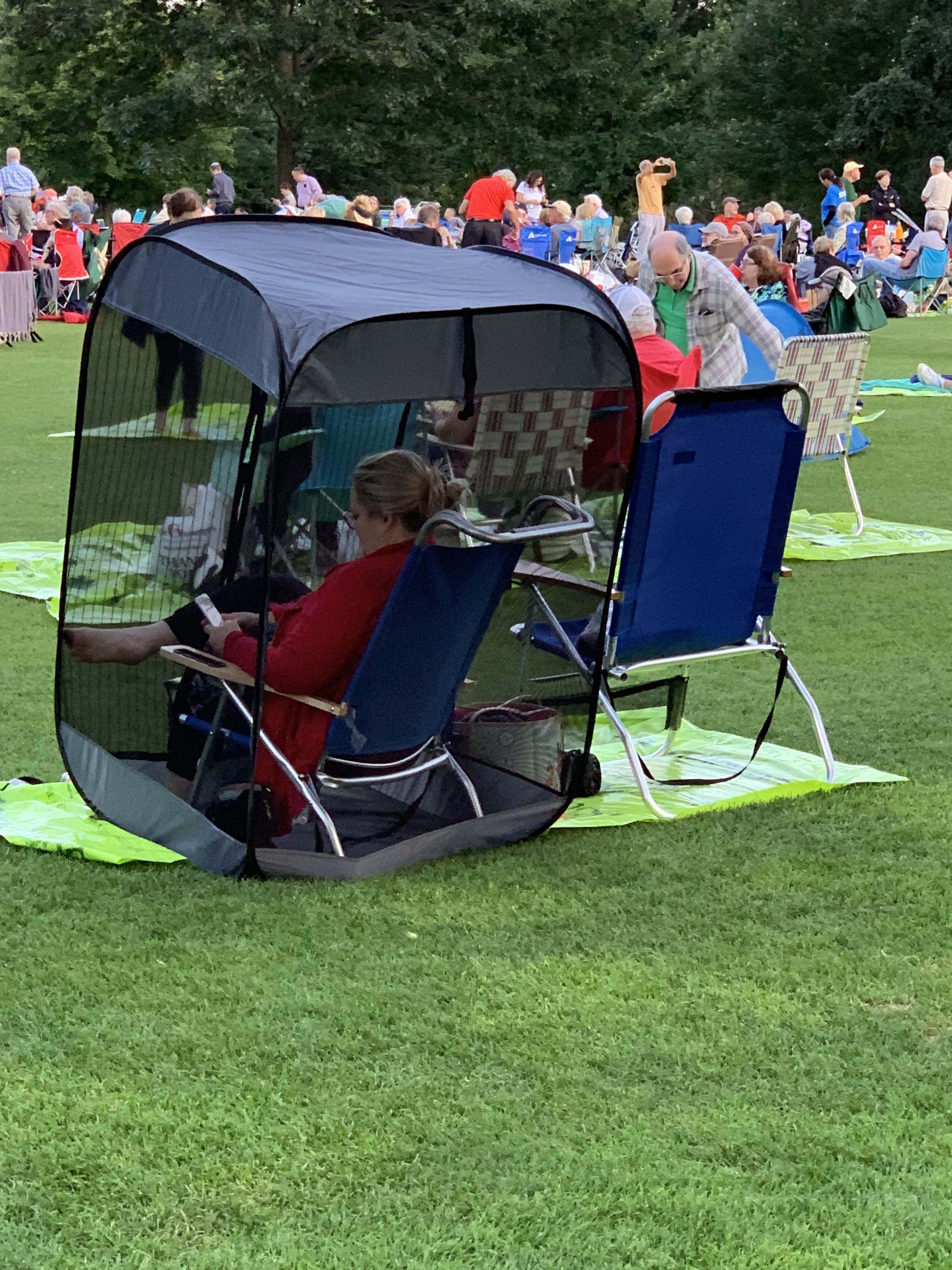 One person’s solution to the mosquitos. We only noticed them in Shed at the final concert when there was very little breeze.