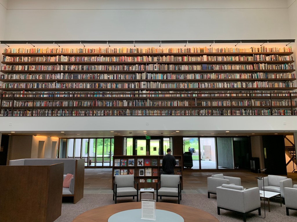 Happily, the library was not off limits to rank and file museum goers, so I could get closer to the two mezzanines of perfectly faced books. But as I stood there I realized there was no access to either wall of books. What a horror. What was going on?