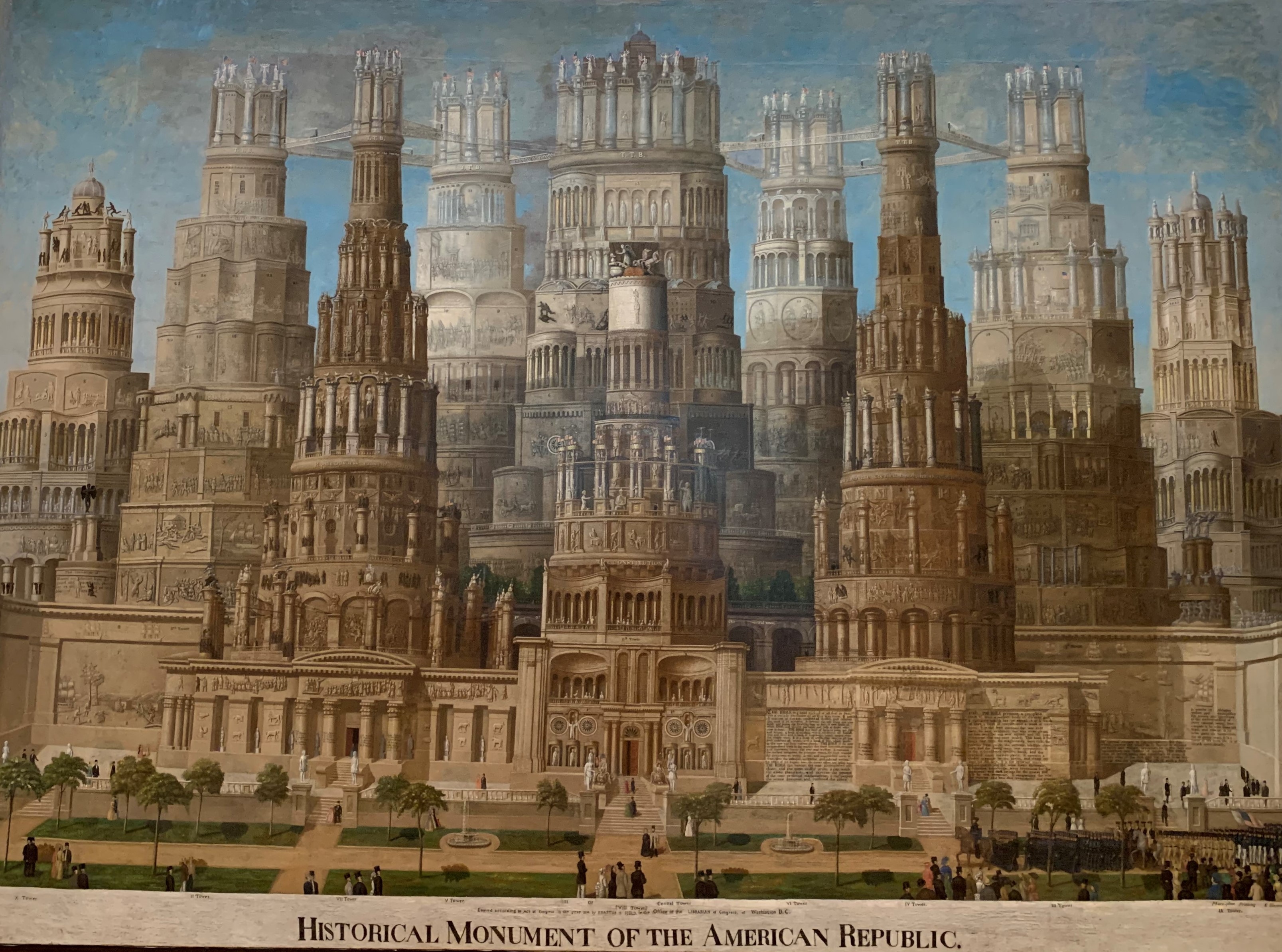 Historical Monument of the American Republic Erastus Salisbury Field This rather large painting is what you see when you walk into the main gallery space in one of the buildings. Look at the train tracks in the sky!