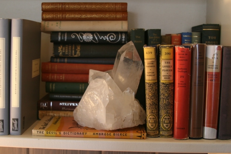 | My little-book collection (and a big crystal) |
