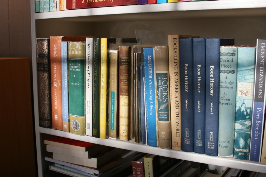 | Some of my books on books leaching over to the right into my books on Britain. |
